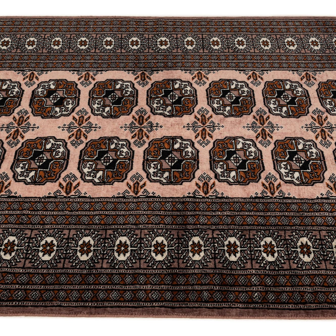 Primary color is Puce. Colors in this rug include: Puce, Black, Brown, Ivory, Gray.
