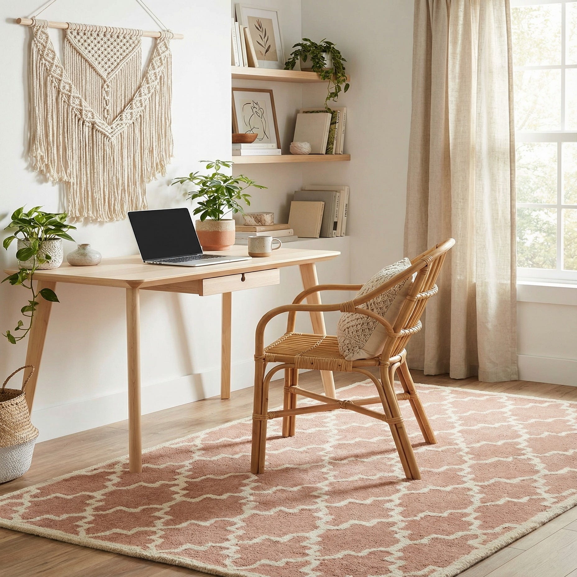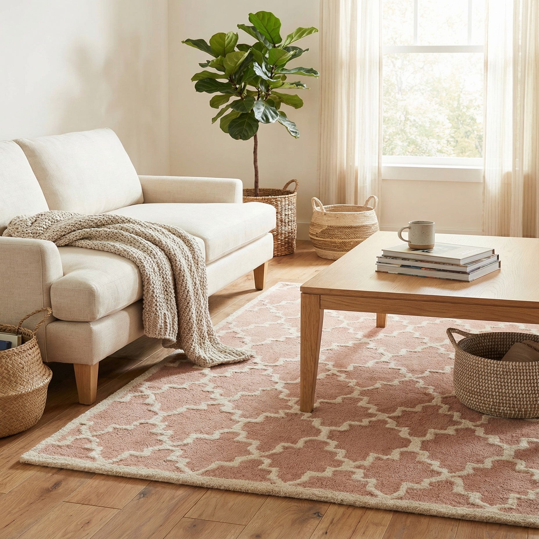 The Luna collection presents a hand-tufted wool and cotton rug in a versatile 4x6 size, highlighting both comfort and craftsmanship. This particular rug showcases a puce background complemented by an interlacing ivory pattern, which adds visual interest and a timeless aesthetic appeal. The distinctive Moroccan trellis design brings a sense of rhythm and geometric beauty to the piece.