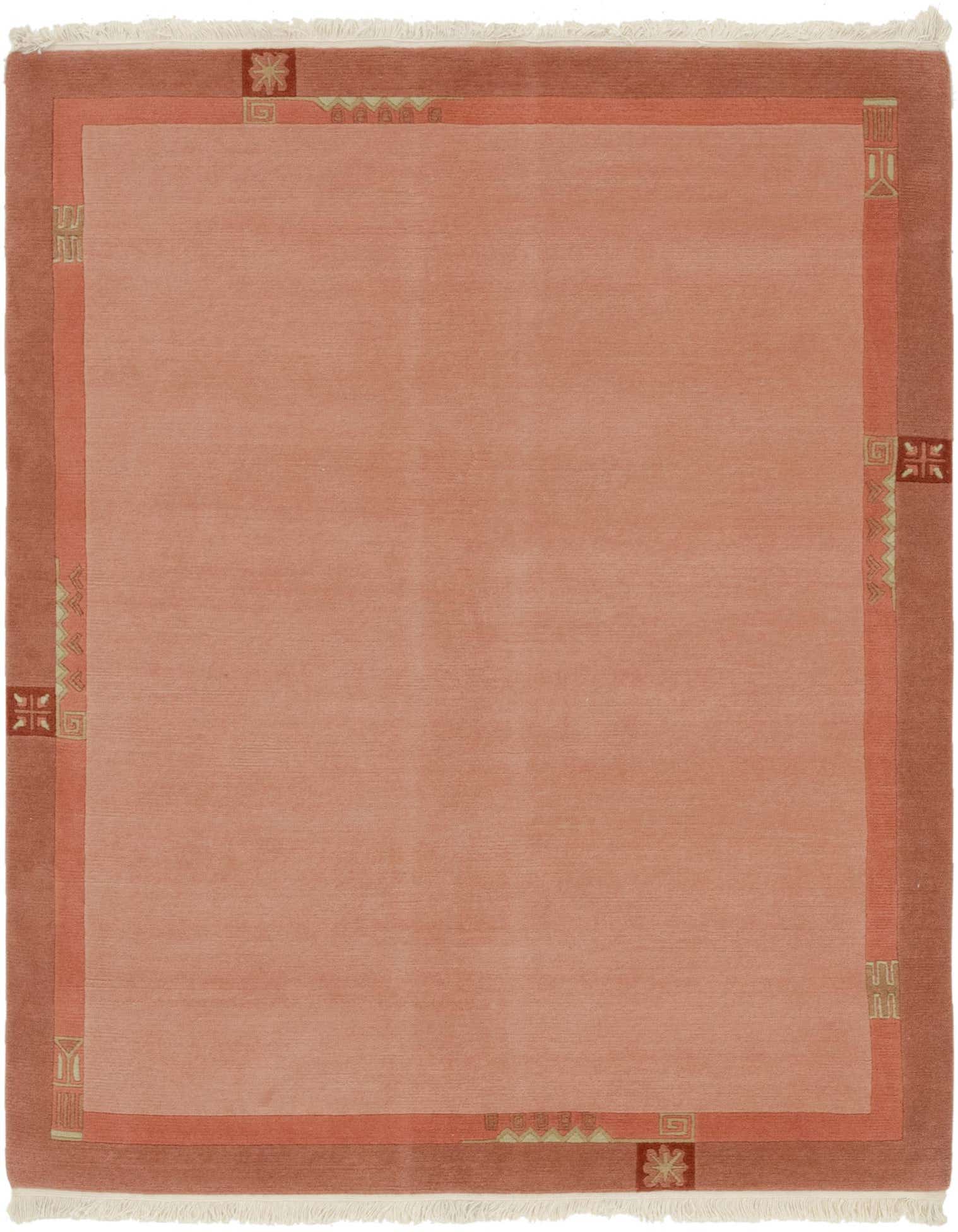 Primary color is Puce. Colors in this rug include: Puce, Beige, Pink, Rust Red, Orange.