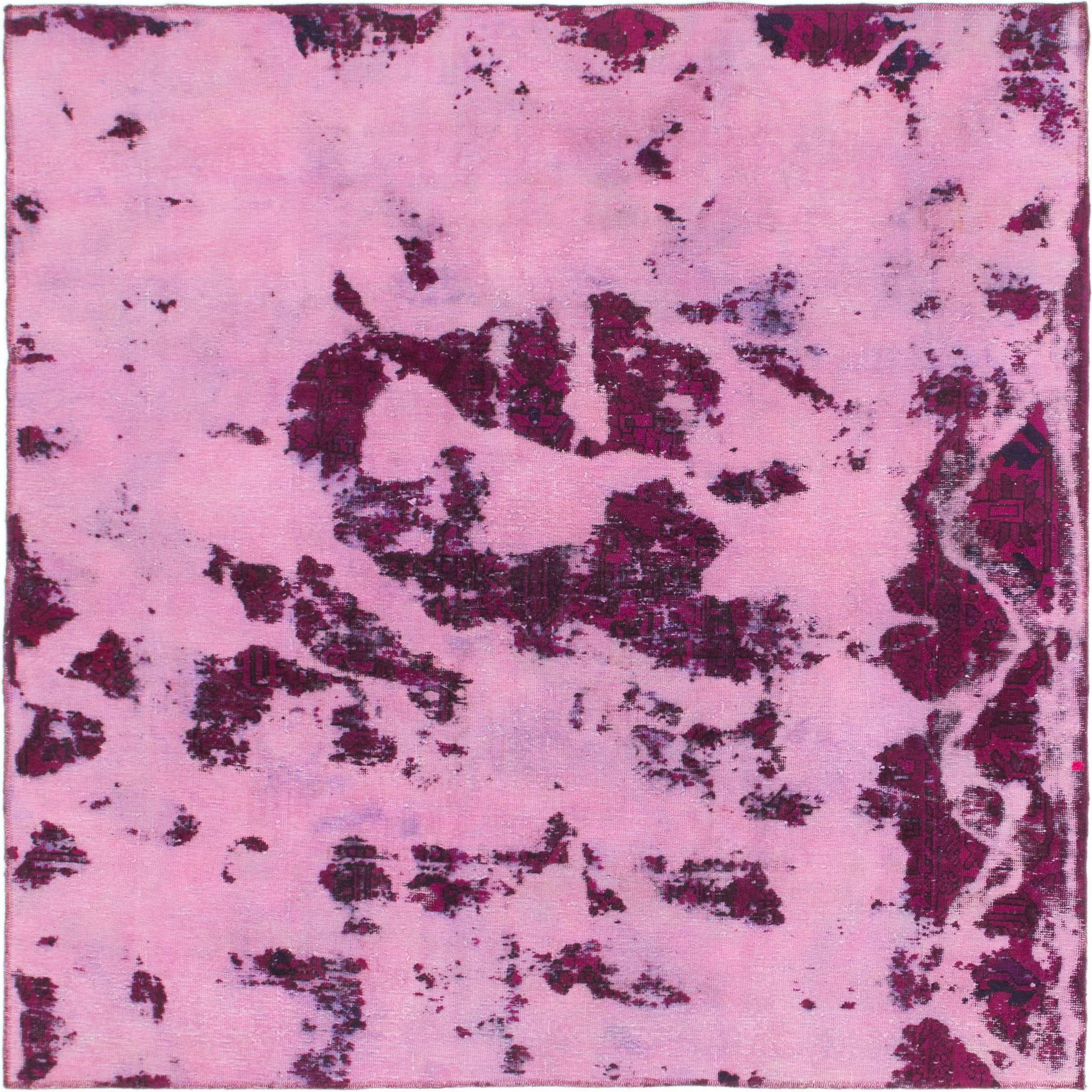 A 6'4 x 7'0 square purple wool rug with an abstract, distressed vintage pattern, ideal for an indoor living space.
