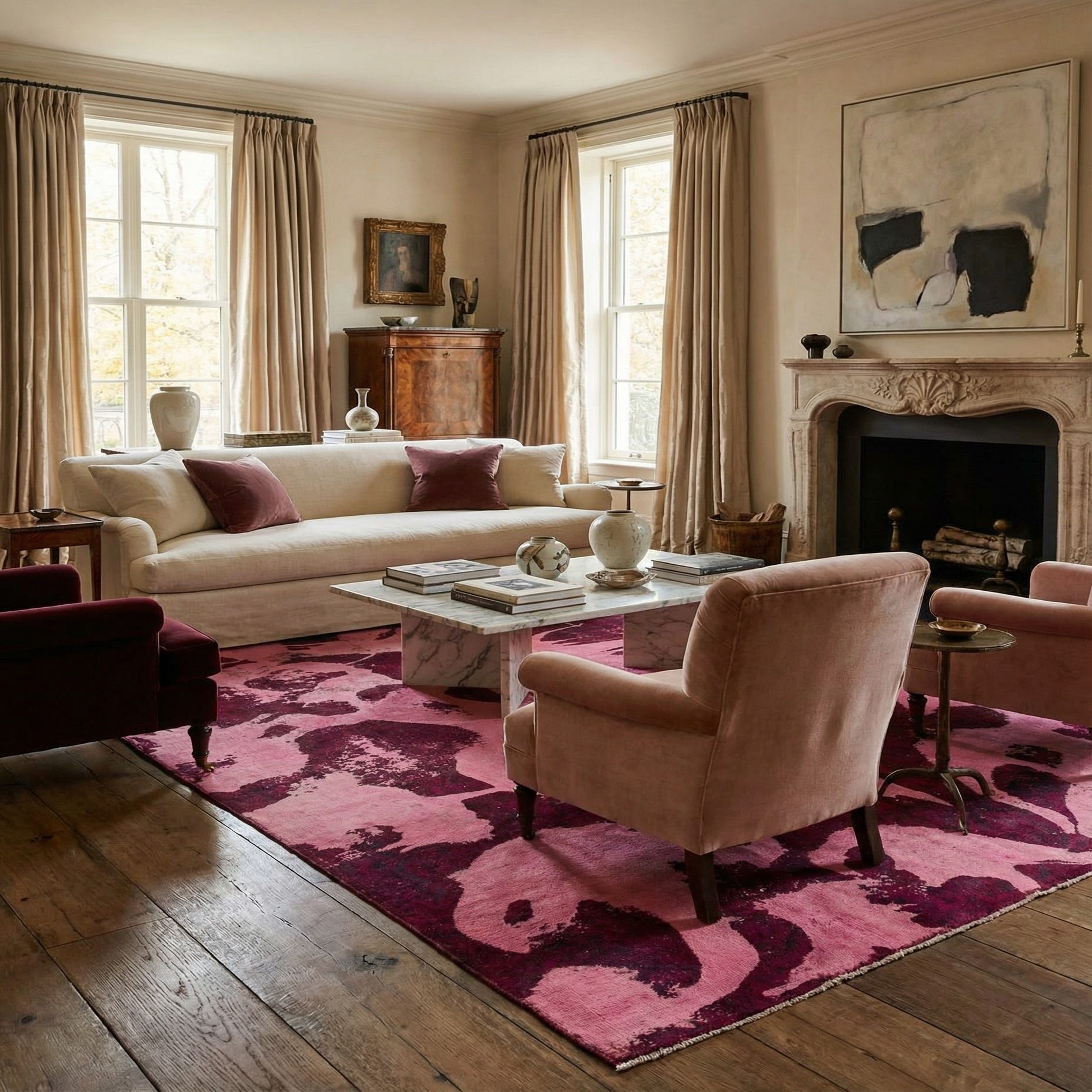 This piece works well as a statement anchor in a contemporary living room paired with neutral sofas and warm wood tones, or as a colorful focal point in a minimalist bedroom where its pattern can contrast with clean lines. It also suits eclectic interiors that mix mid-century furniture and metallic accents, or a boutique dining space that benefits from a dramatic, textile-forward element.