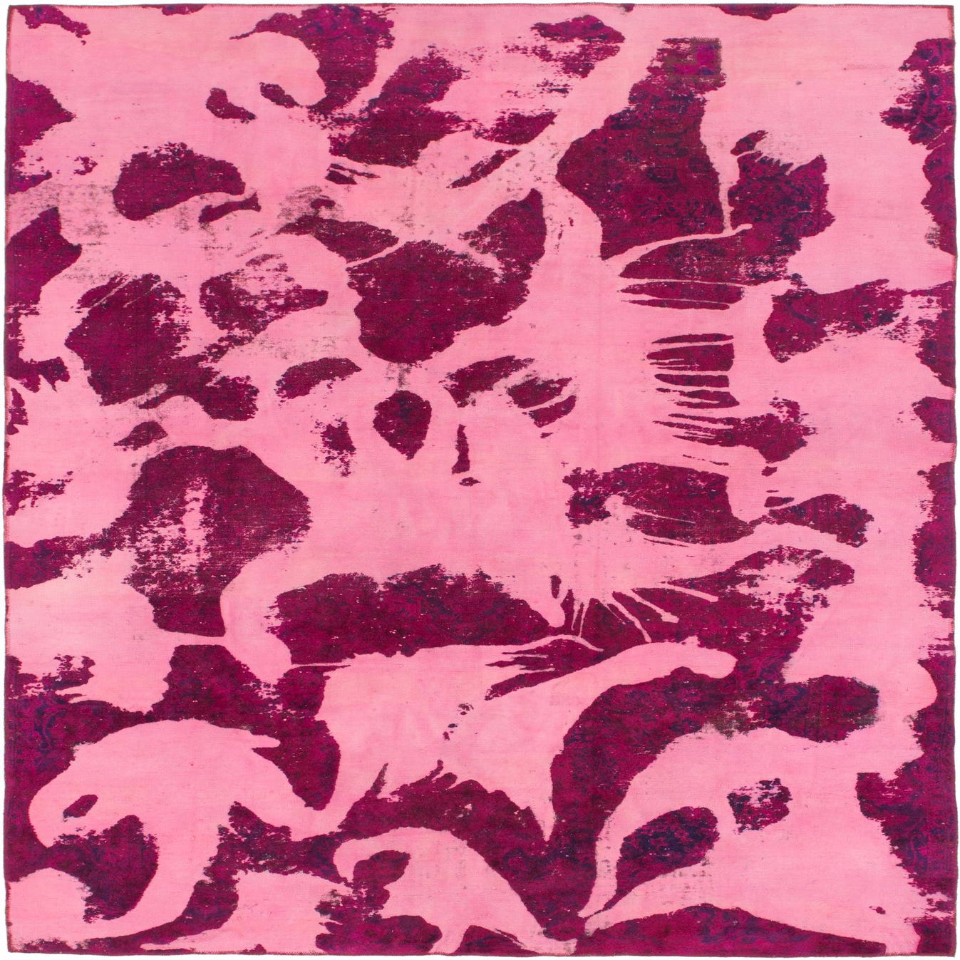 A large 8x11 rectangular Ultra Vintage rug with an abstract, distressed pattern in varying shades of purple and pink.