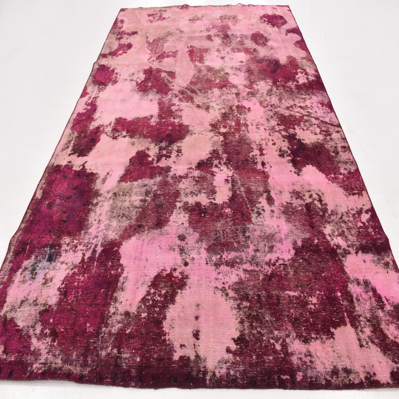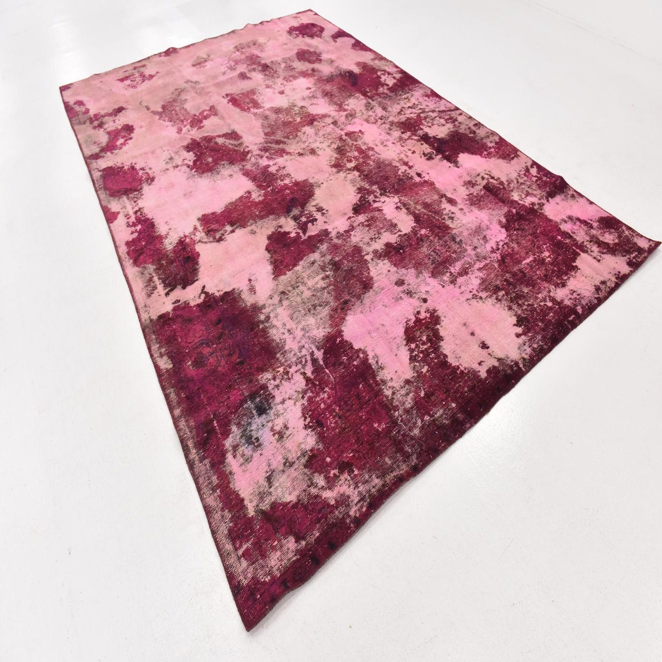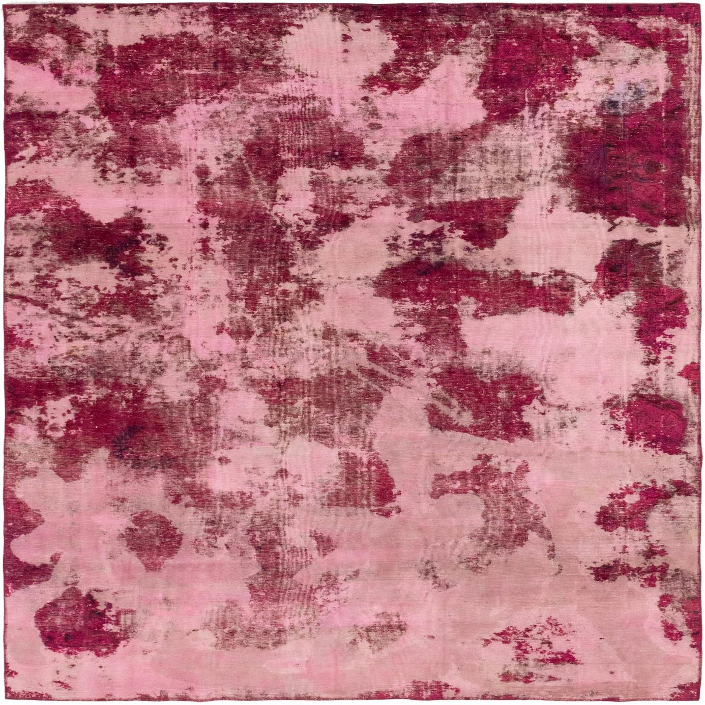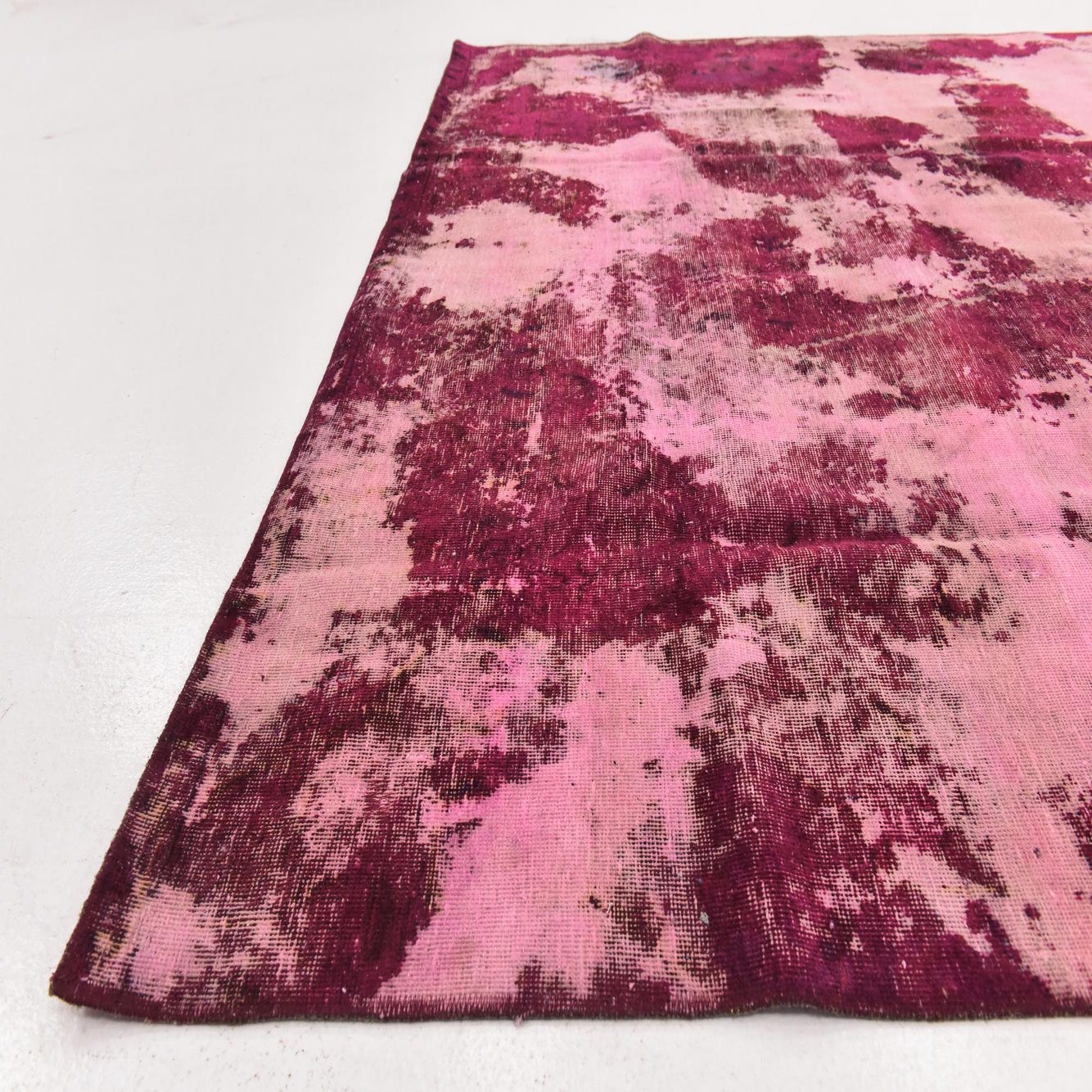 A rectangular 8x12 Ultra Vintage wool rug featuring an abstract, distressed pattern in varying shades of purple and pink.