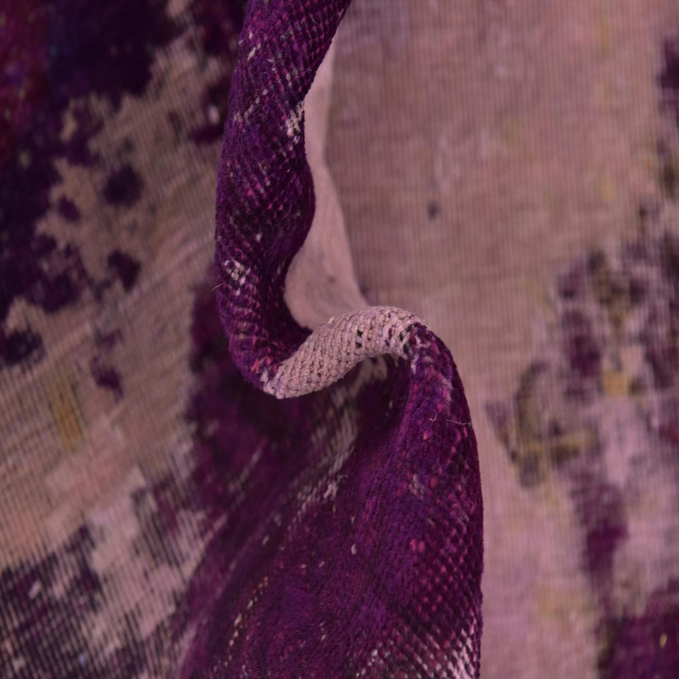 A 9x12 rectangular Ultra Vintage rug with an abstract purple and light pink distressed pattern, suitable for a living room.