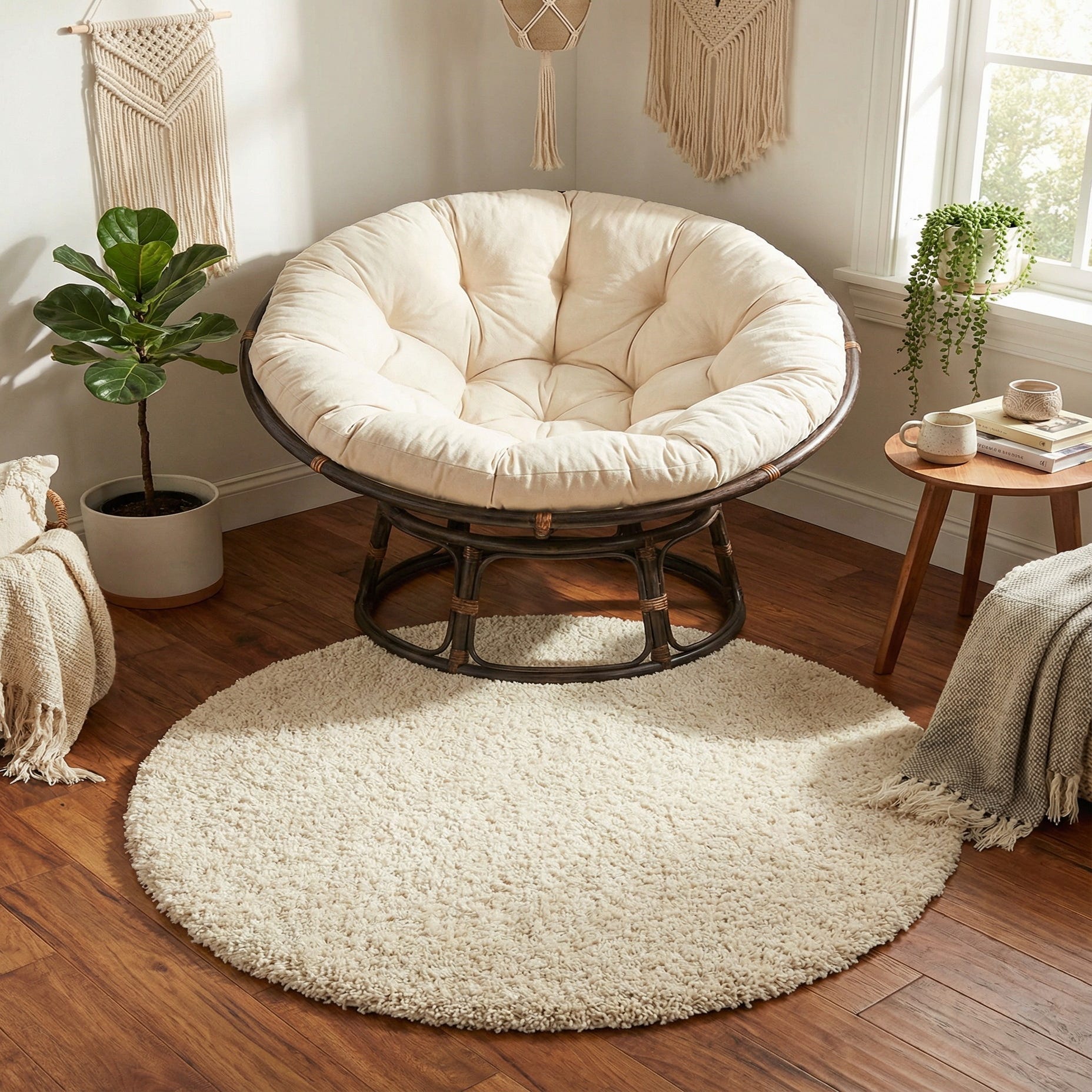 The pure ivory tone of this round rug provides a neutral base that can blend seamlessly into a variety of interior design themes, from minimalist to contemporary, or even traditional spaces looking for a touch of modern comfort. Due to its round shape and inviting texture, it serves as an ideal accent piece for areas such as living rooms, under coffee tables, in cozy reading nooks, or as a welcoming element in entryways.