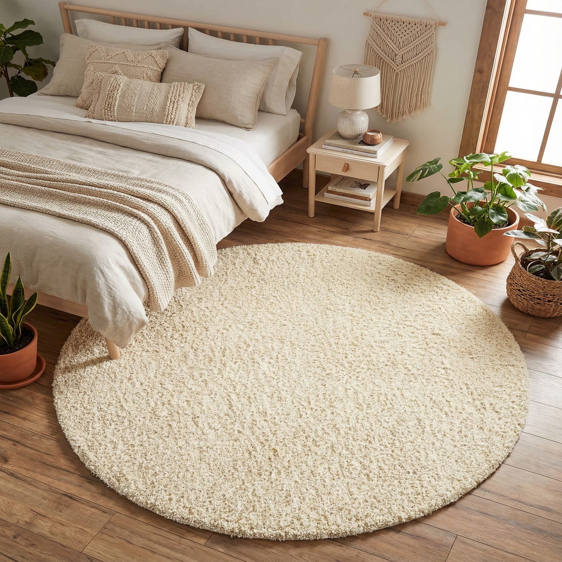 Place it in a bedroom or cozy reading nook to add a soft landing underfoot, layer it beneath a round café table in a breakfast corner, or use it to soften a minimalist living area. It complements Scandinavian, coastal, contemporary, and transitional schemes—pair with warm woods and woven accents for a relaxed look or contrast with darker furniture and bold textiles for added depth.