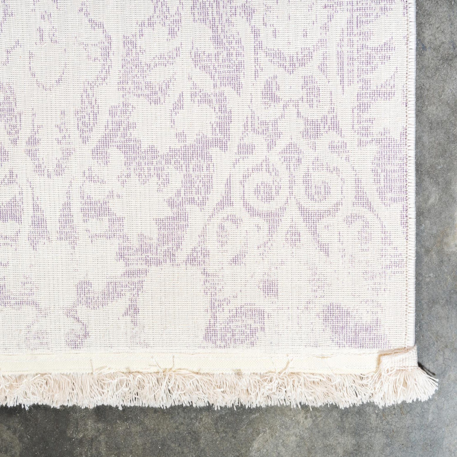 I was looking for a rug that was light without being too light white since I have young kids. This rug has an overall solid gray color but when you stand back & look at it it doesn’t look too dark. Basically it’s just what I was looking for. Like many rugs these days it looks darker from one side so I added a photo from each side to show the dark vs light side. I love the vintage appearance & the fringe adds a nice touch. It isn’t quite as thick as I was hoping but not so thin that I am unhappy with it. The fibers are dense so it does have a nice soft feel underfoot & a standard rug pad was just enough to make it feel thicker. I was just happy my vacuum didn’t pull the rug up off the floor like my last rug did- so it’s definitely thicker than that one was.