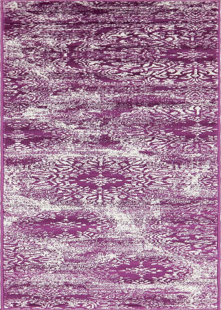 Primary color is Purple. Colors in this rug include: Purple, Ivory.
