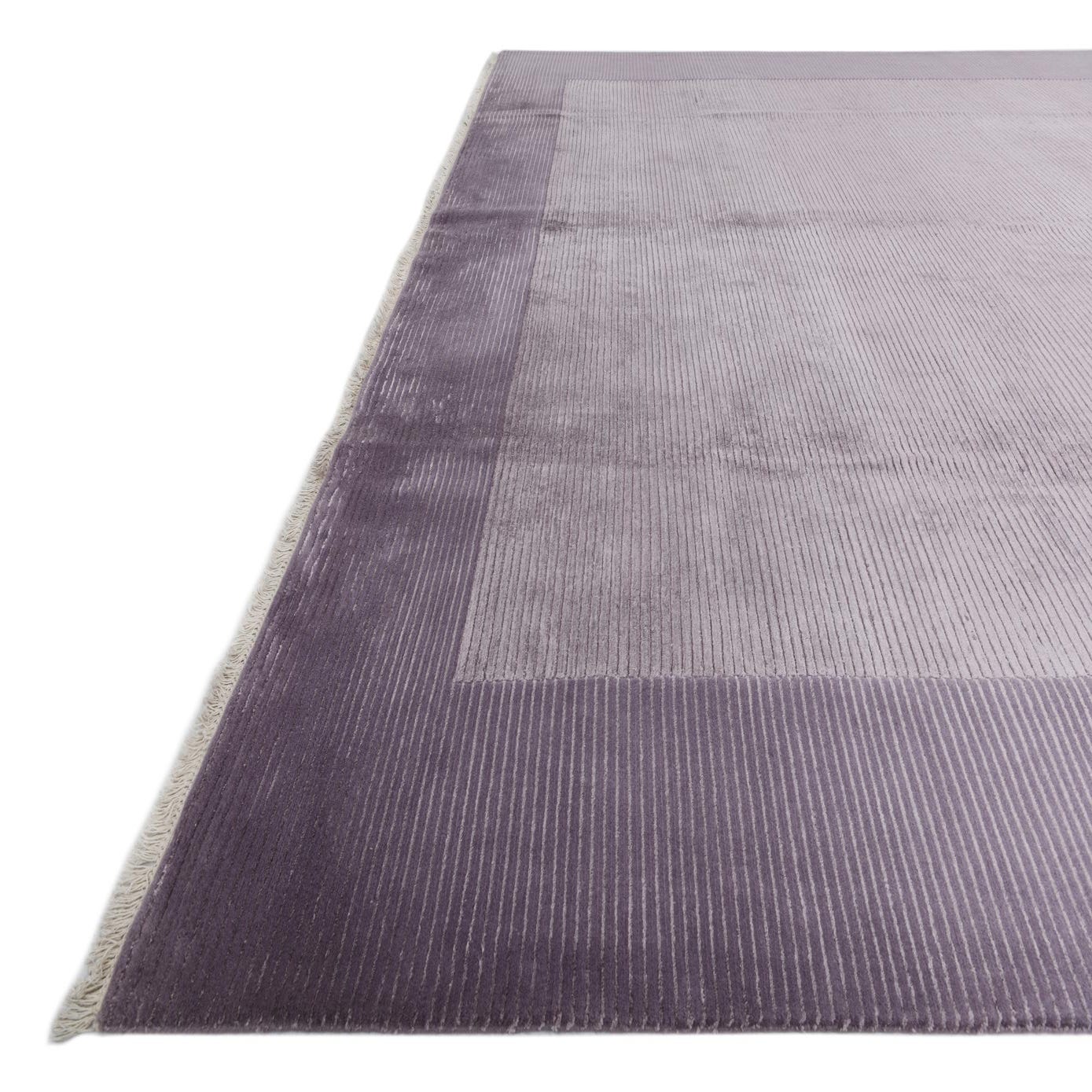 A 10x13 rectangular purple modern wool rug with a lighter purple center and a darker purple border.