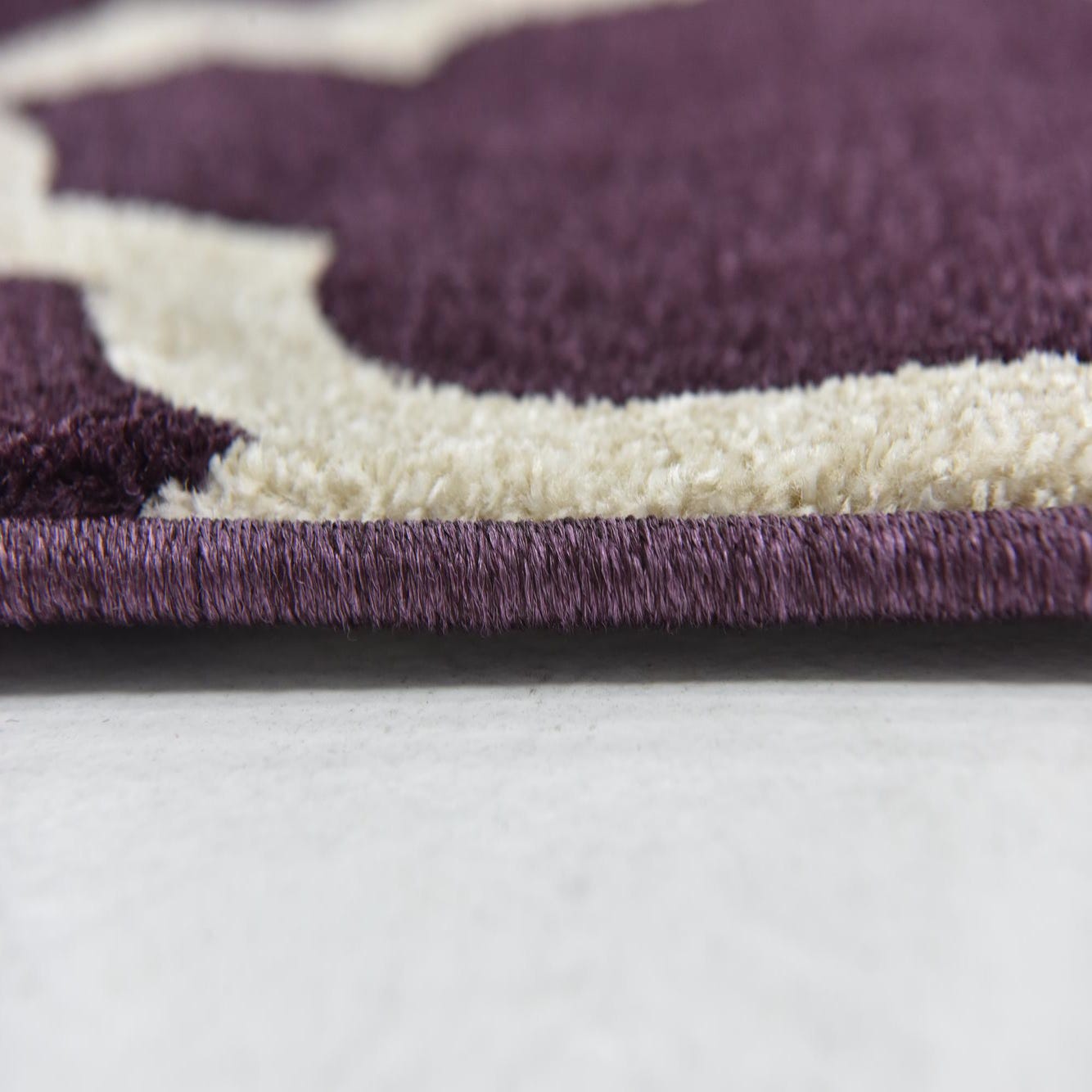 Primary color is Purple. Colors in this rug include: Purple, Ivory.