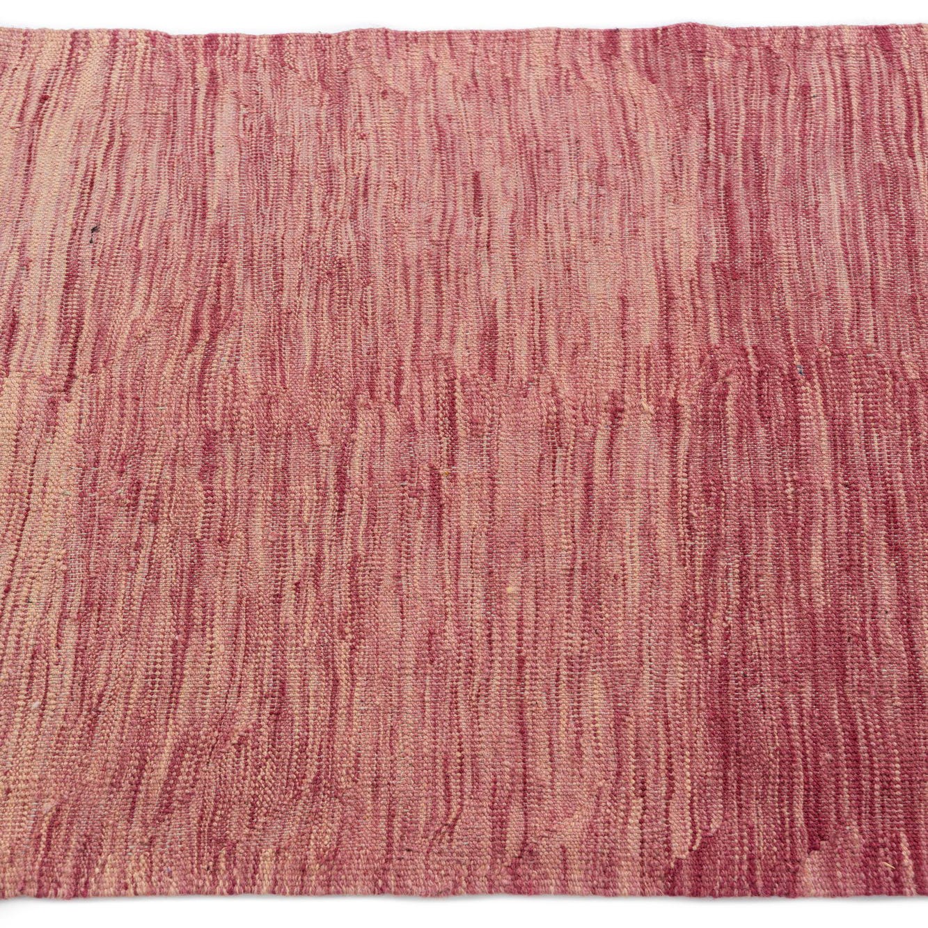A 16 ft runner rug from the Kilim Modern collection, featuring a flatweave texture in varying shades of purple, ideal for a hallway.