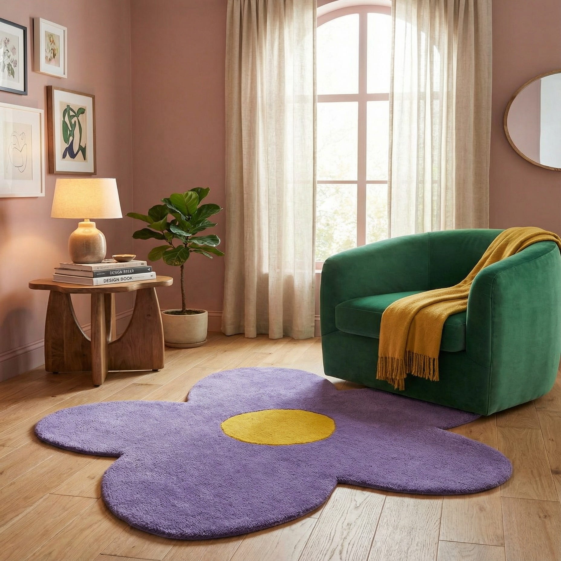 4' 1 x 4' 1 Happy Rugs Funky Flower Wool Round