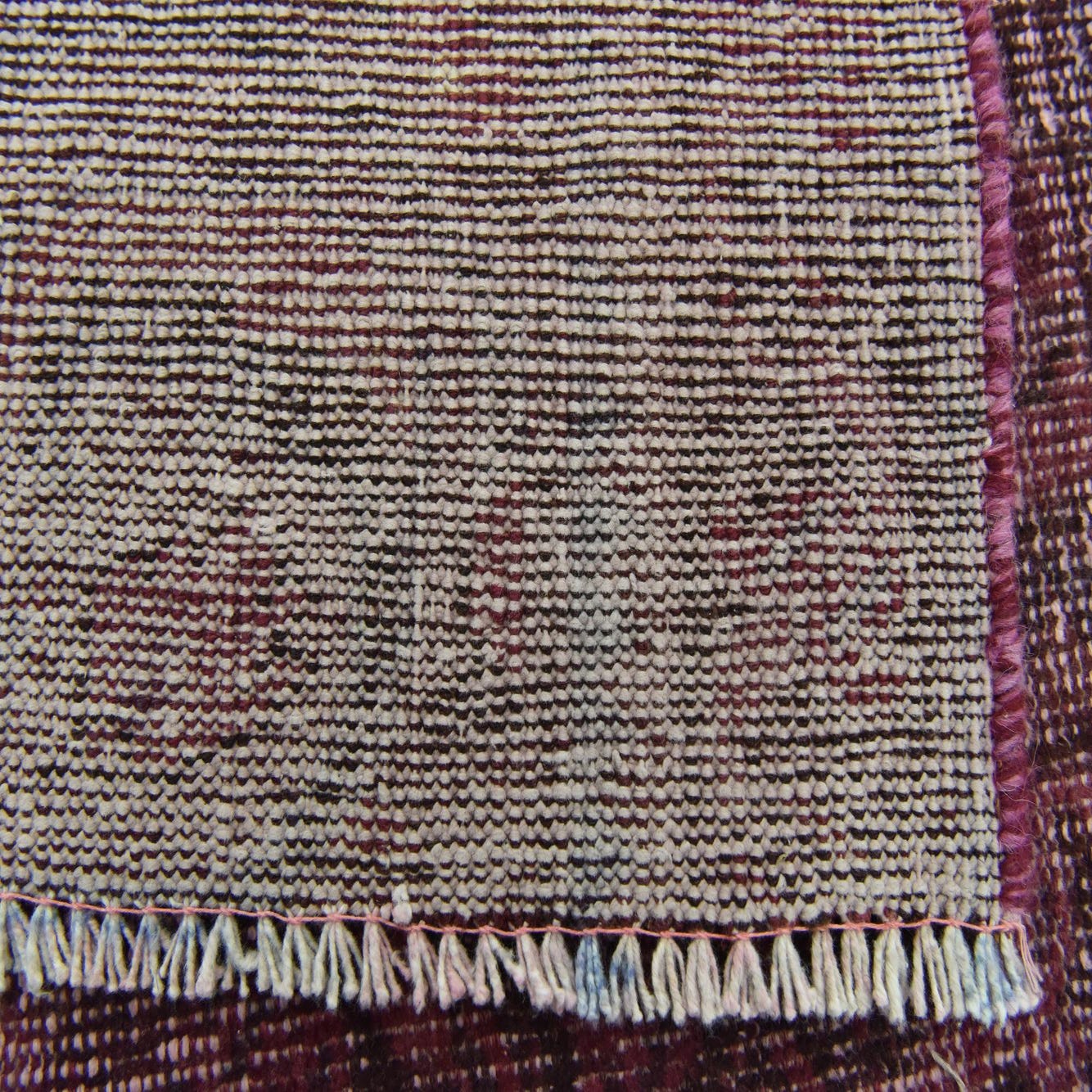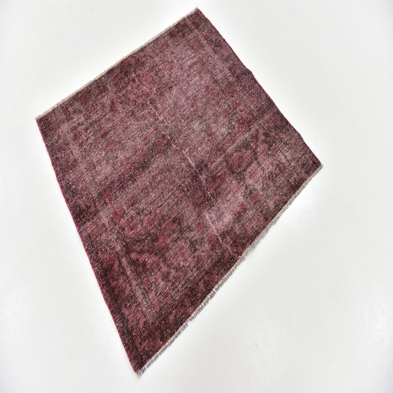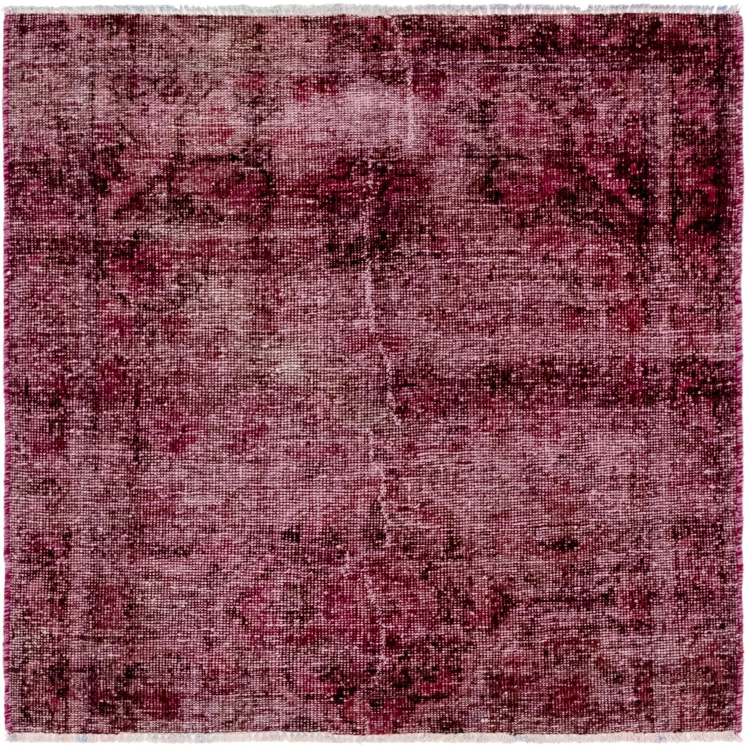 A square 3' 8 x 4' 0 Ultra Vintage wool rug in varying shades of purple with a distressed Persian pattern.