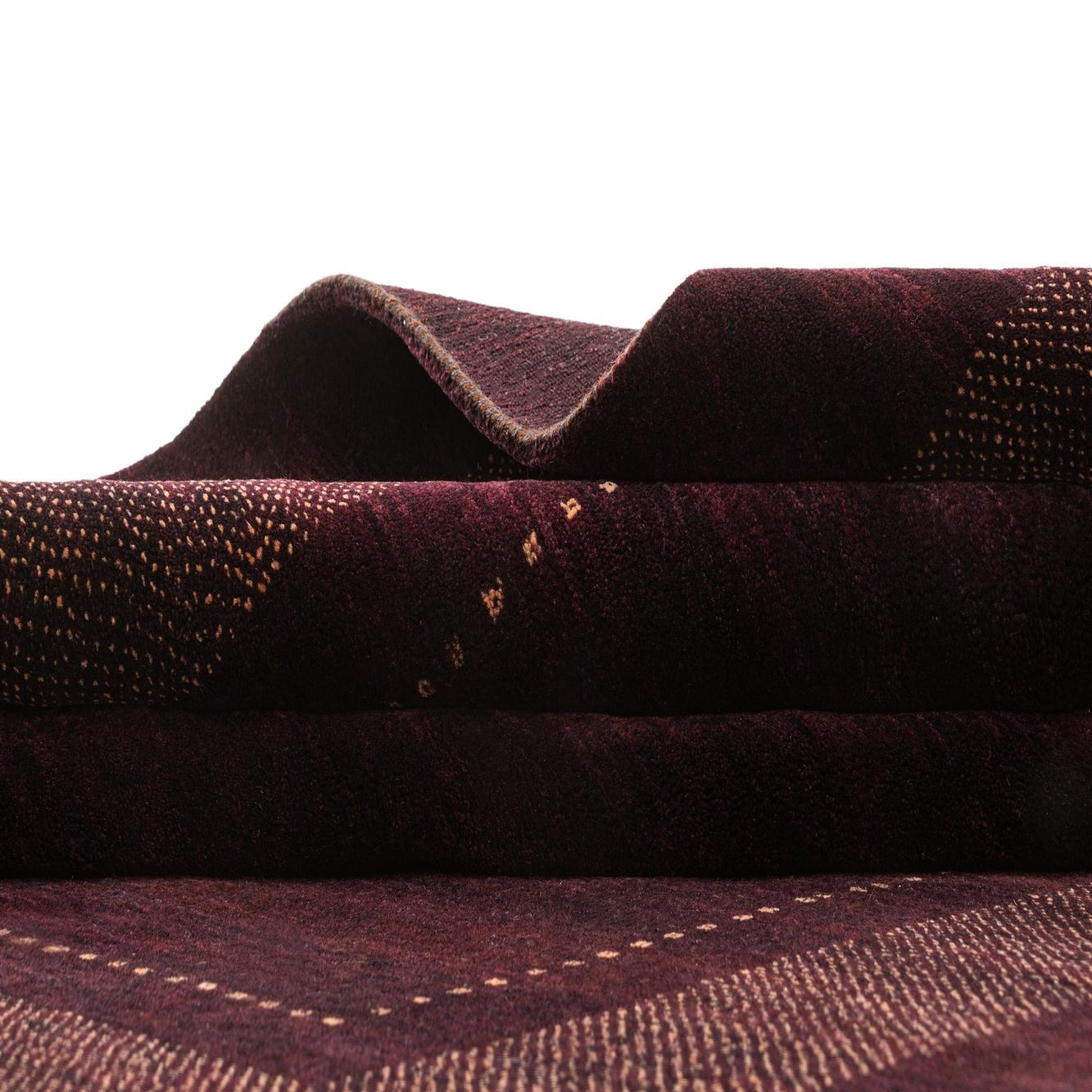 A 4x6 rectangular Sonaghuly wool rug in deep purple with a subtle lighter purple border, handmade for indoor spaces.