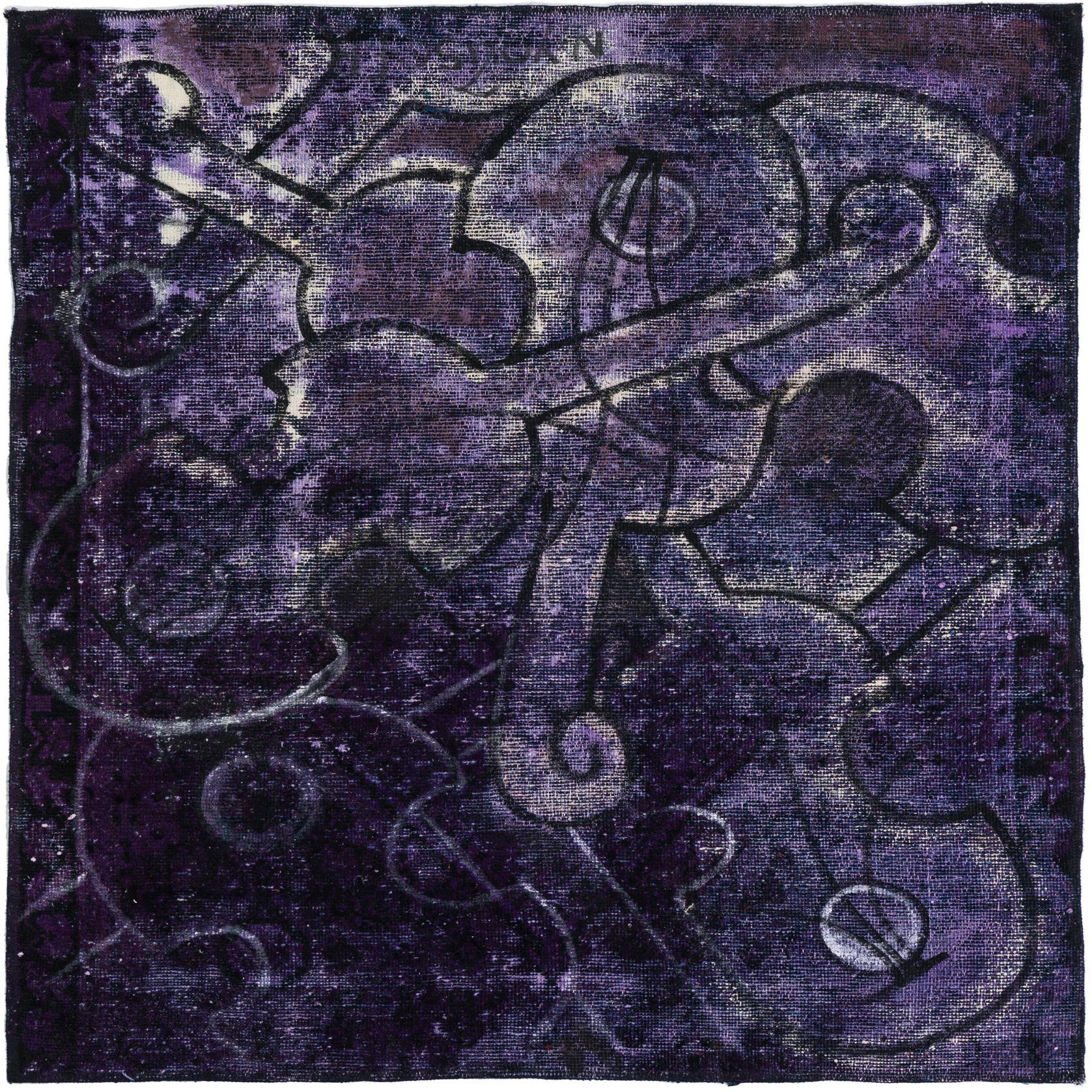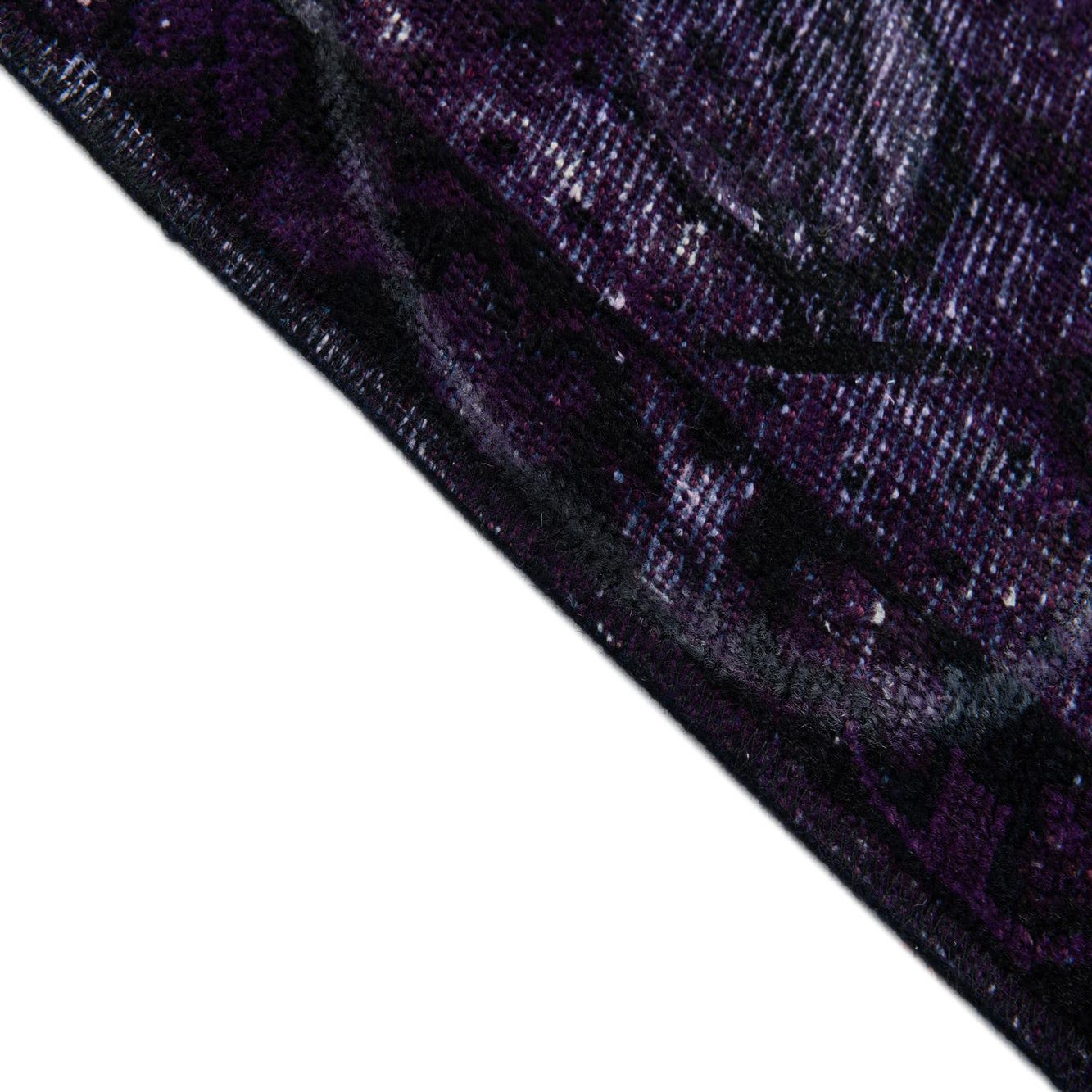 Primary color is Purple. Colors in this rug include: Purple, Black, Ivory.