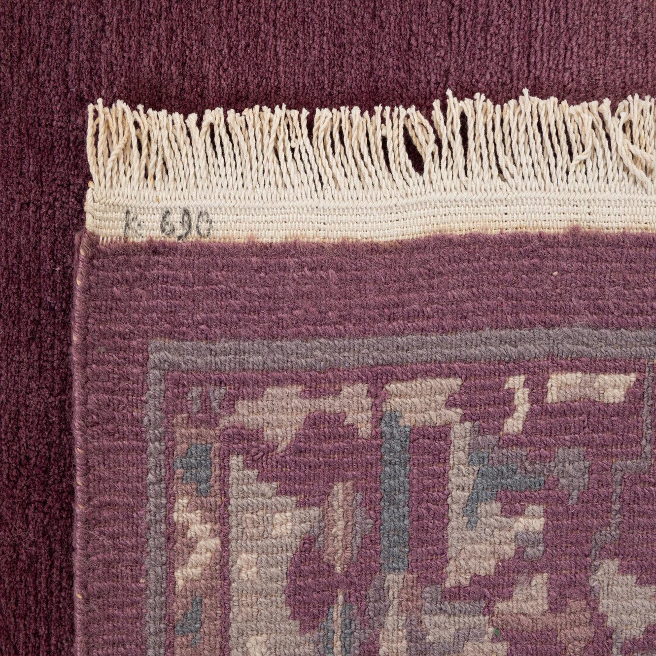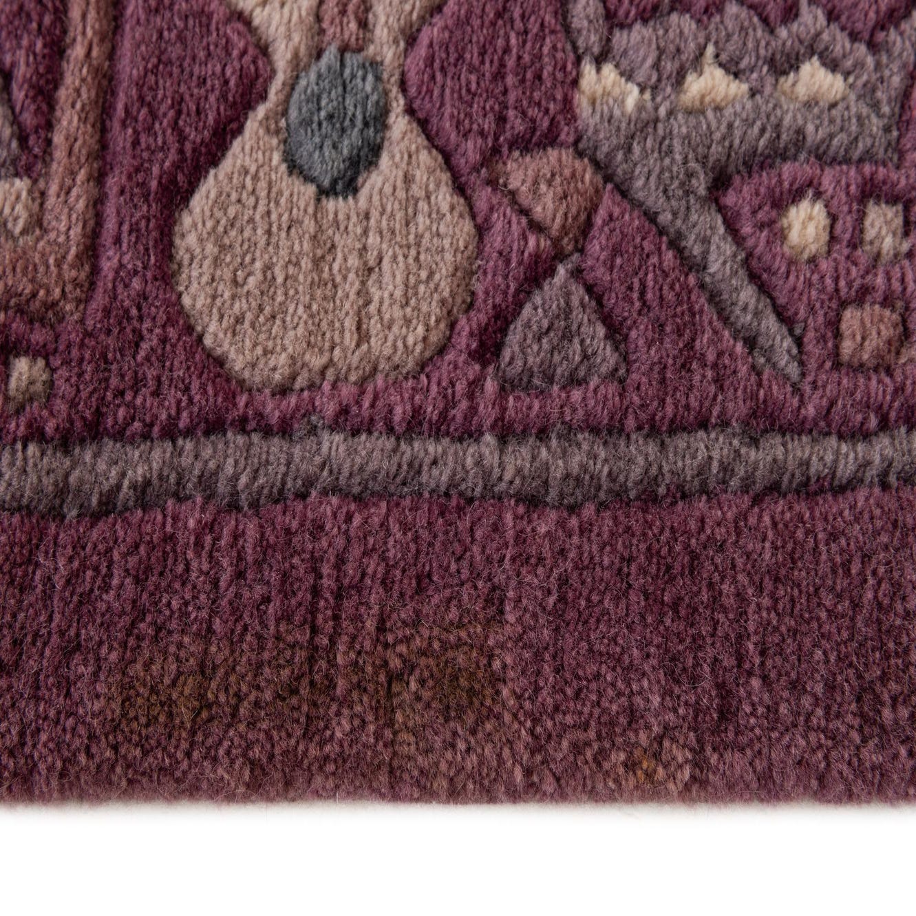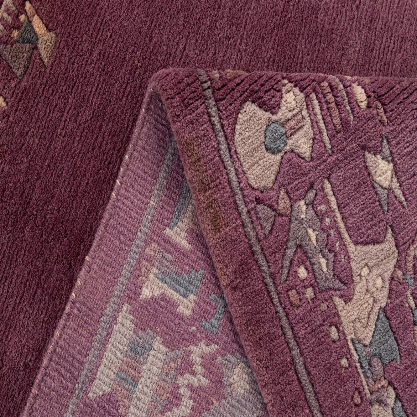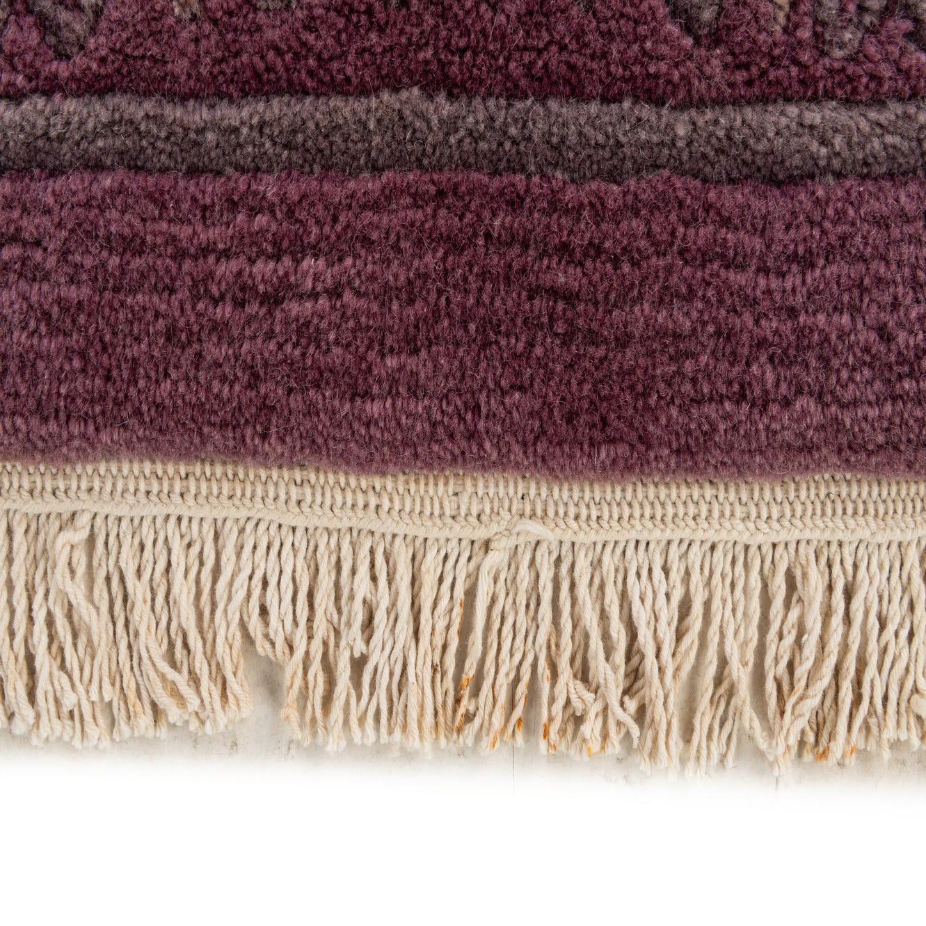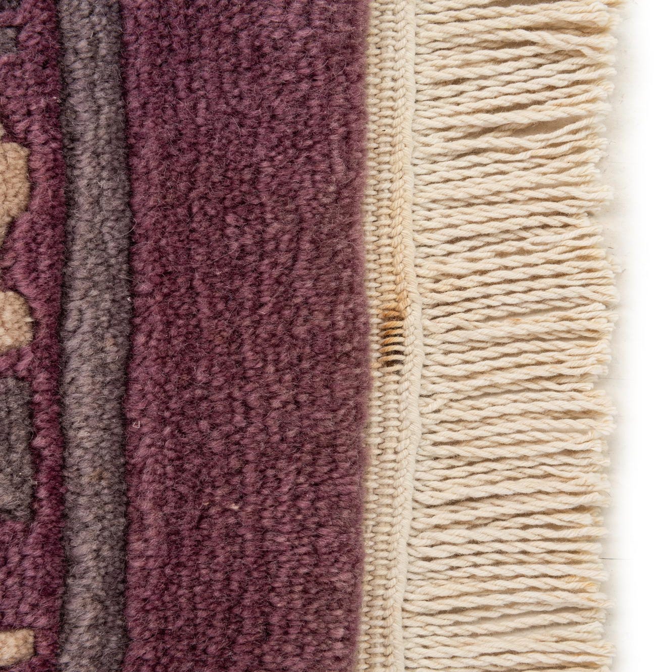 Primary color is Purple. Colors in this rug include: Purple, Gray, Ivory.
