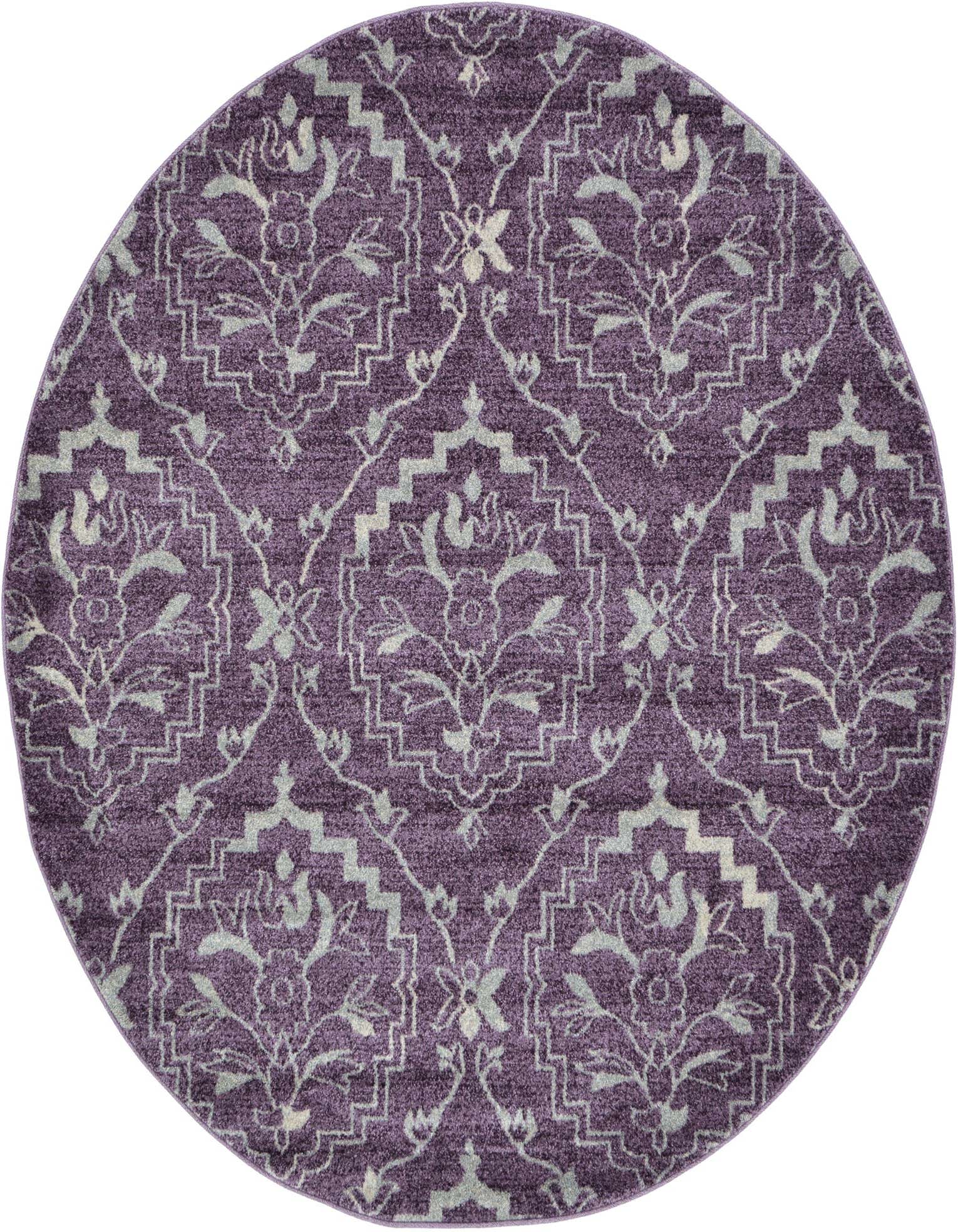 Primary color is Purple. Colors in this rug include: Purple, Silver, Ivory.