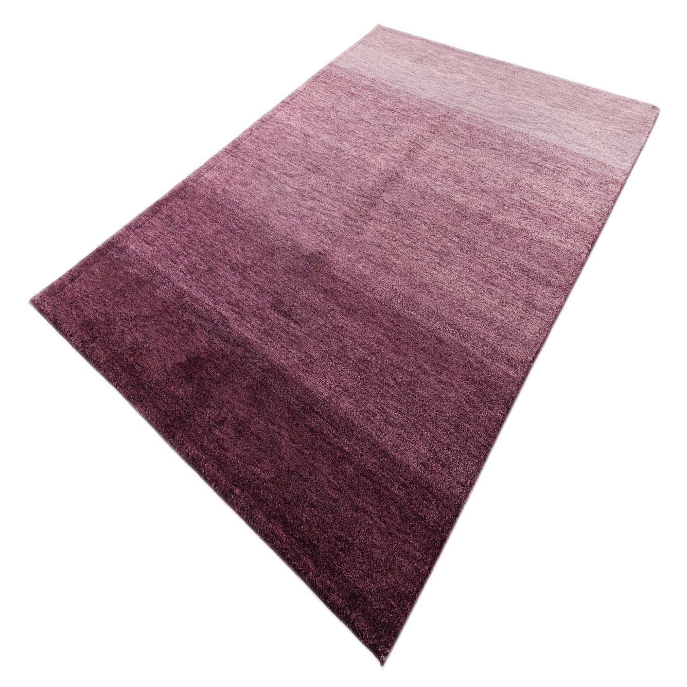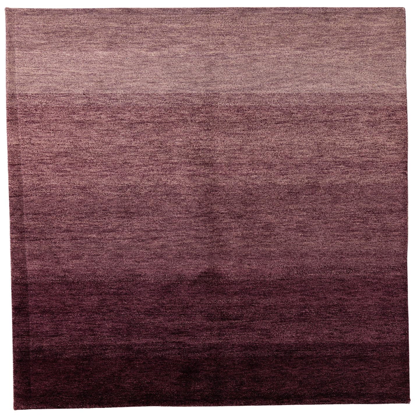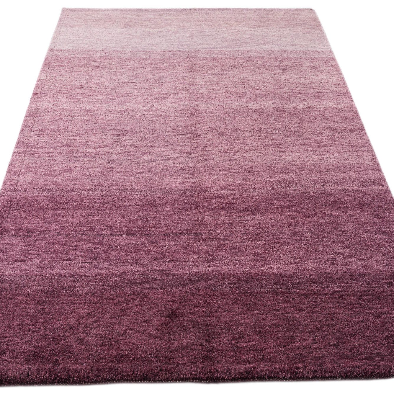 A 6x9 rectangular Kashkuli Gabbeh rug in shades of purple, featuring a modern ombre design, perfect for a living room.