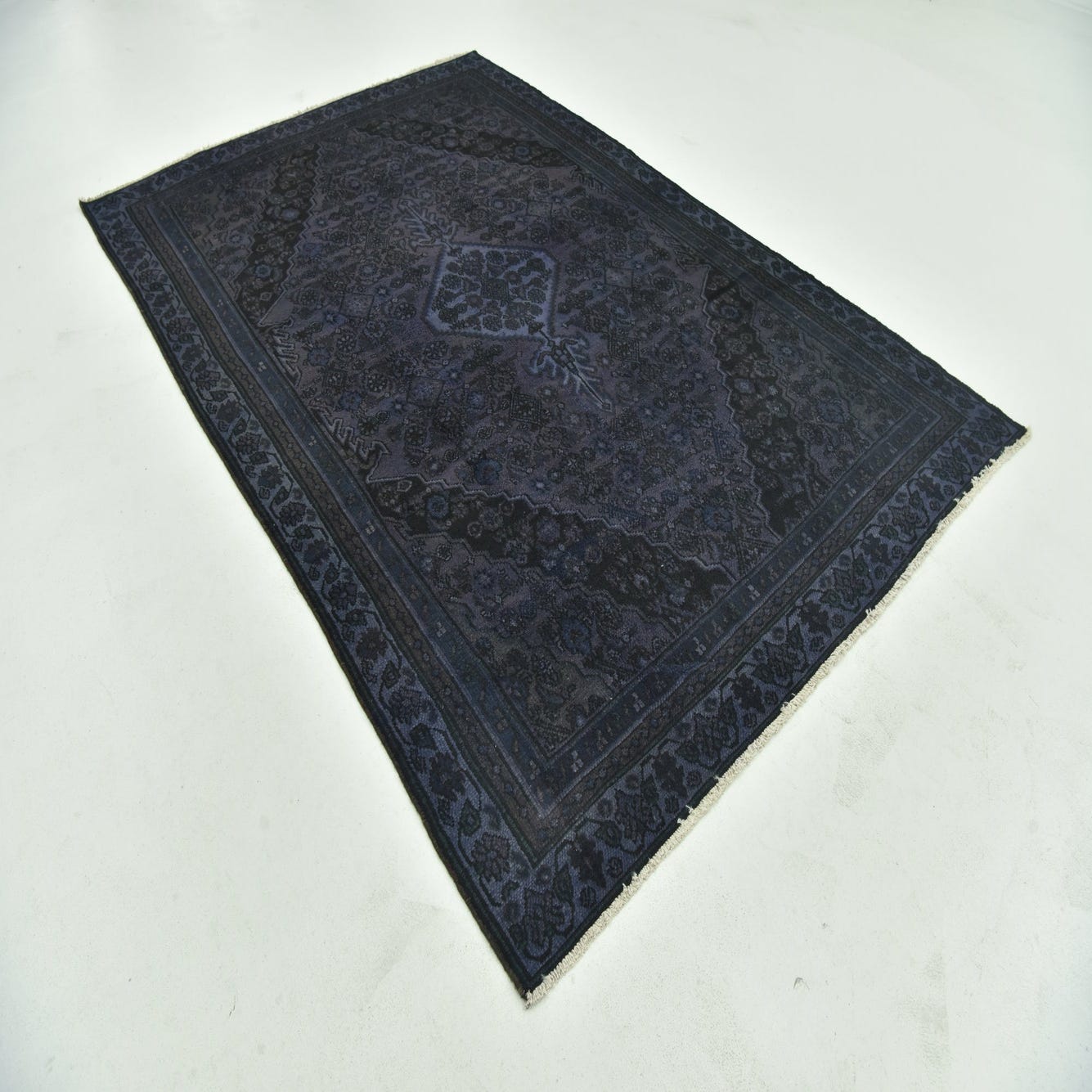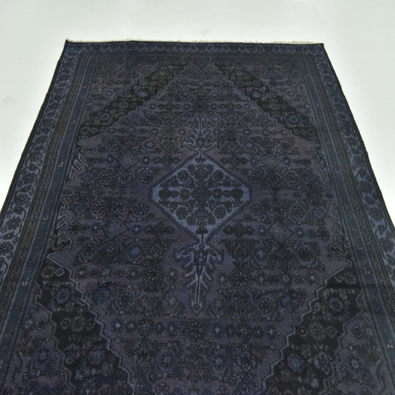 This Persian Ultra Vintage rug is an antique Persian Rug that has been washed, over-dyed, and then shaved down to a low pile. Look at the detail pictures to fully appreciate the uniqueness of this piece.