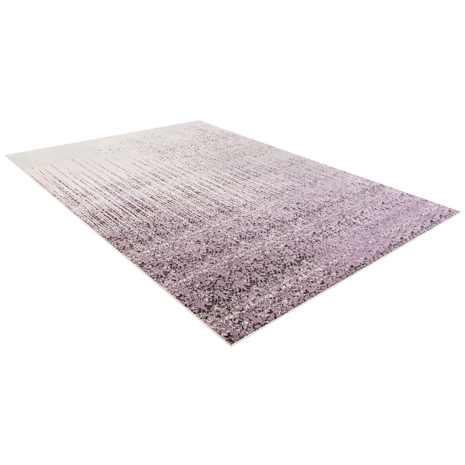The Angelica collection presents this 7x10 machine-woven rug, crafted with 100% polypropylene for durability and a lasting appearance. The piece features a rich purple background, brought to life with varying shades of violet and tastefully contrasting ivory accents. The texture of the rug is inviting, with a dense, plush pile that adds comfort underfoot.