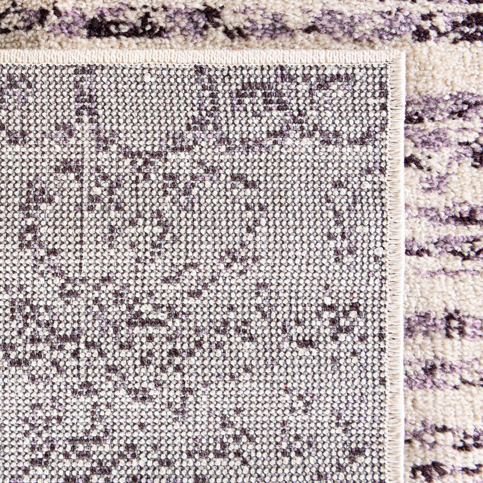 Primary color is Purple. Colors in this rug include: Purple, Ivory, Violet.