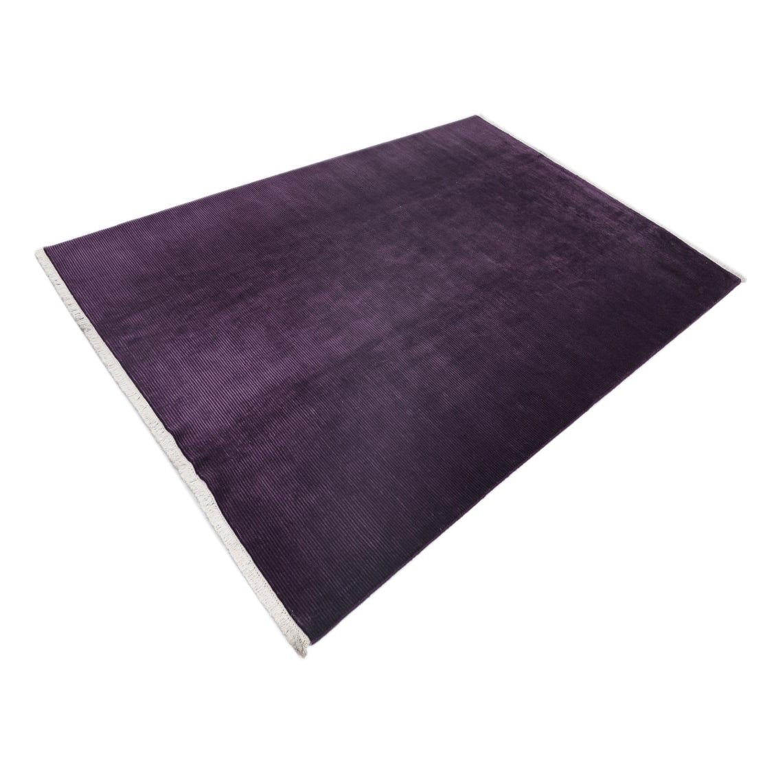 The Darya collection presents a 7x10 hand-knotted rug crafted from 100% wool, offering a plush tactile experience underfoot. This piece showcases a uniform, rich purple background, dynamically infused with subtle variations in tone that convey depth and visual interest. A gentle texture enhances the appeal, providing a sensory dimension to its refined appearance.