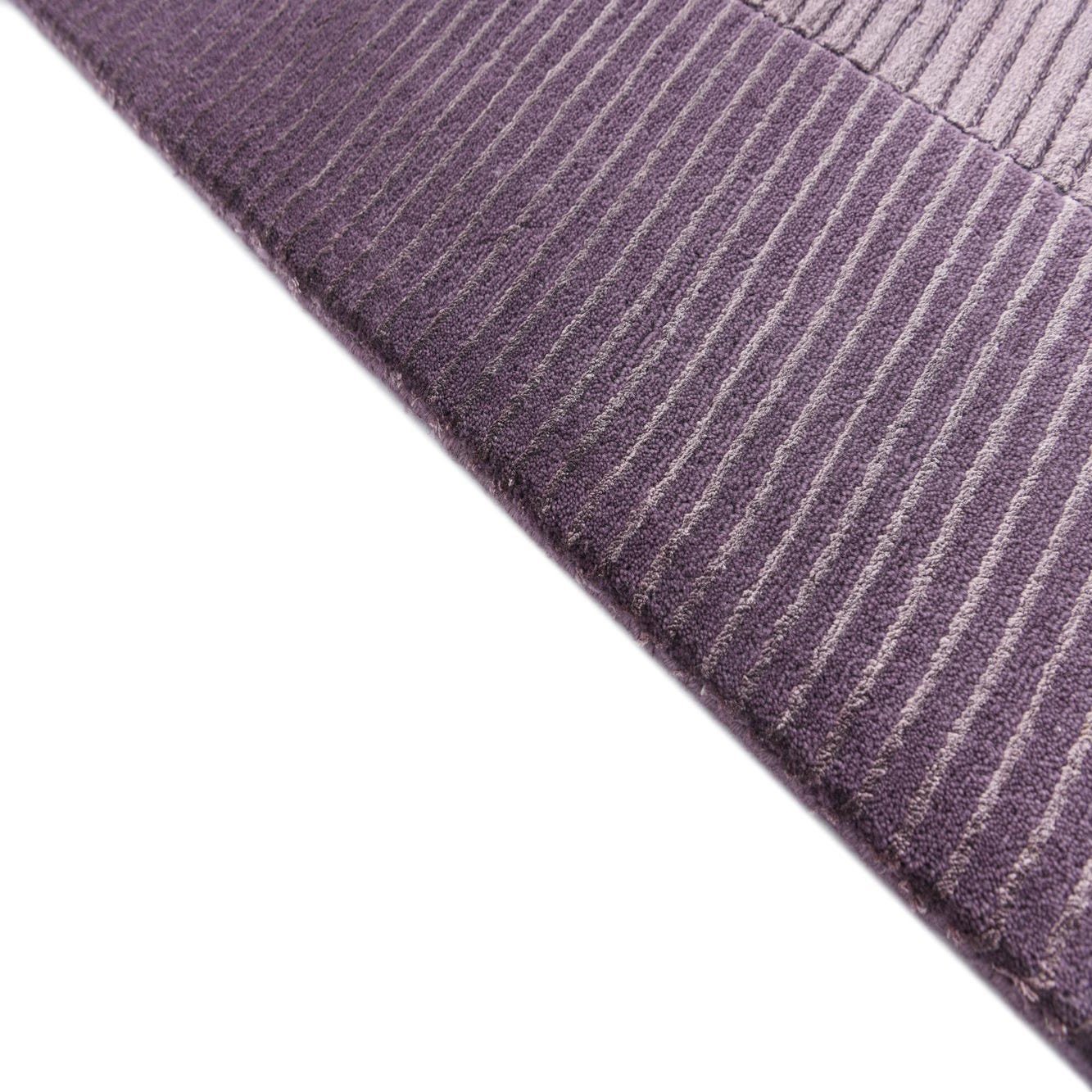 A 7x10 rectangular Darya rug in varying shades of purple, featuring a modern striped pattern and a high pile.
