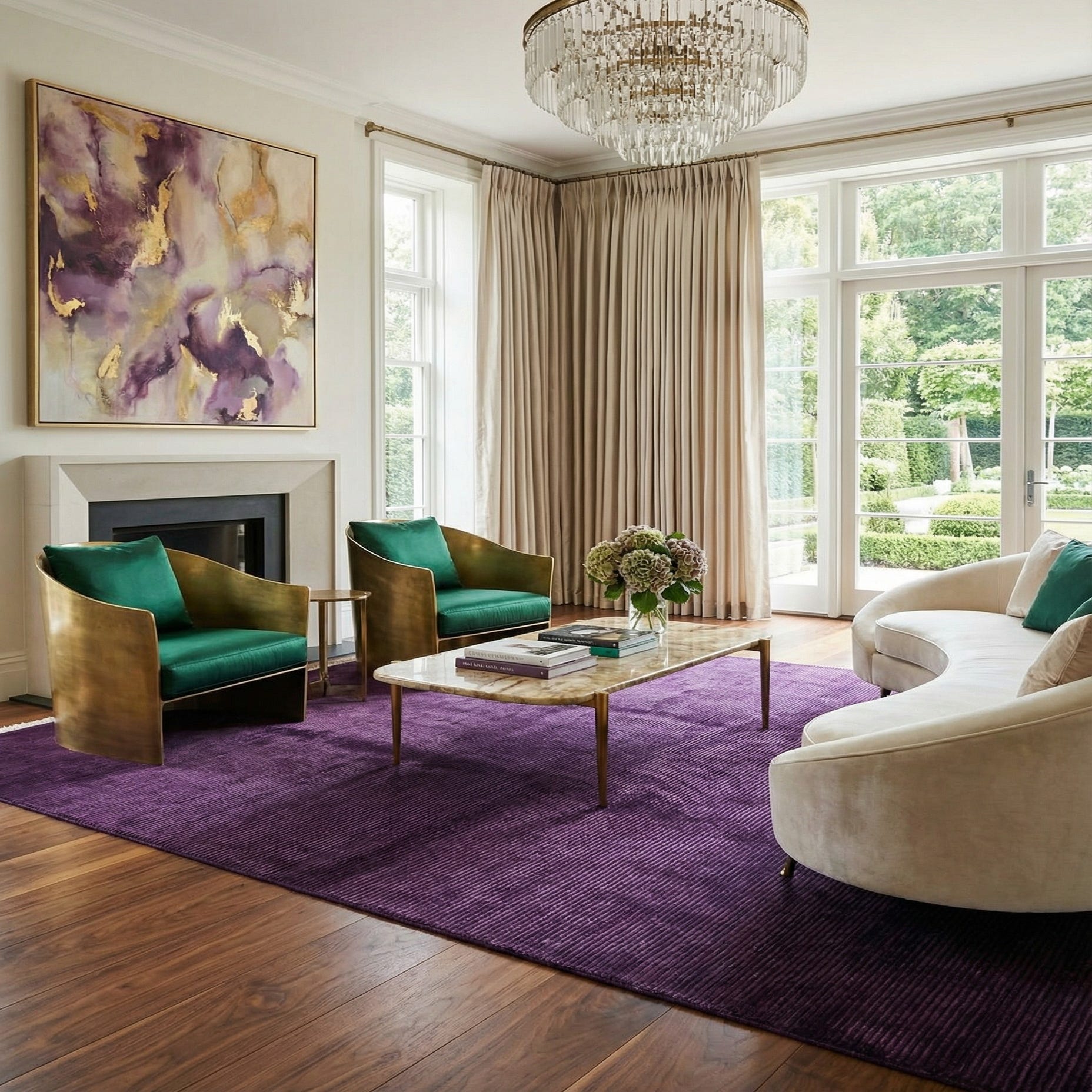 The uniform hue and texture within the rug's surface present a cohesive and contemporary aesthetic, while subtle variations in the purple tones add depth and visual interest. This piece resonates with the understated elegance that can complement minimalist, modern, or even eclectic decors.