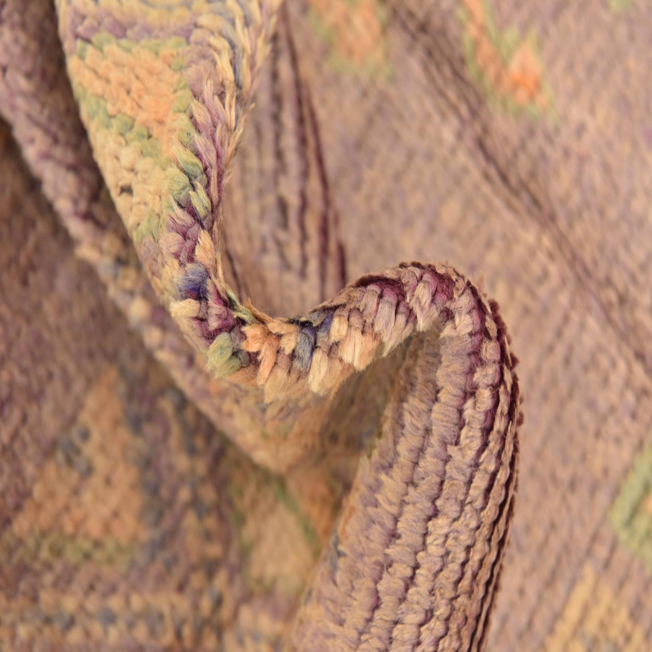 Primary color is Purple. Colors in this rug include: Purple, Gray, Orange.