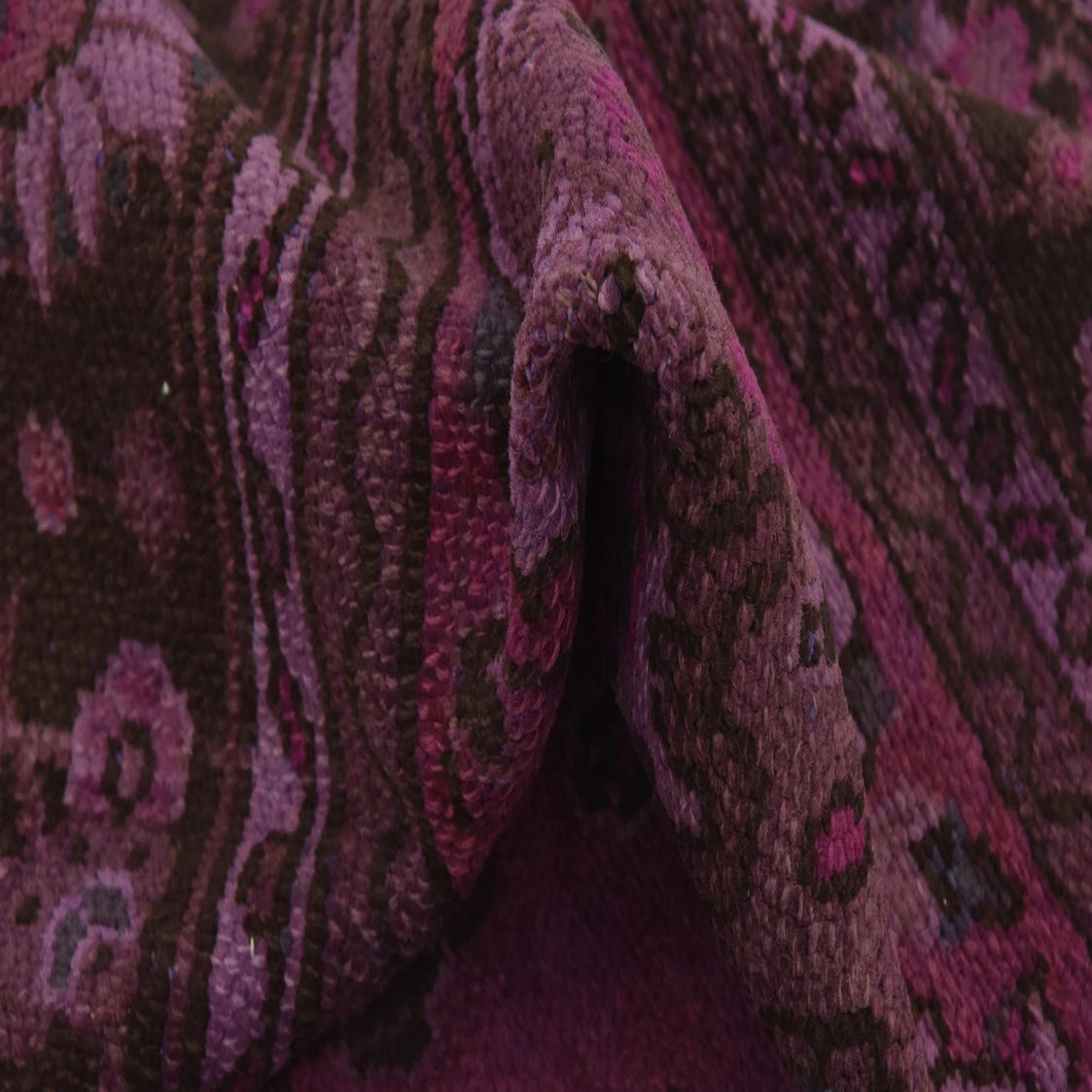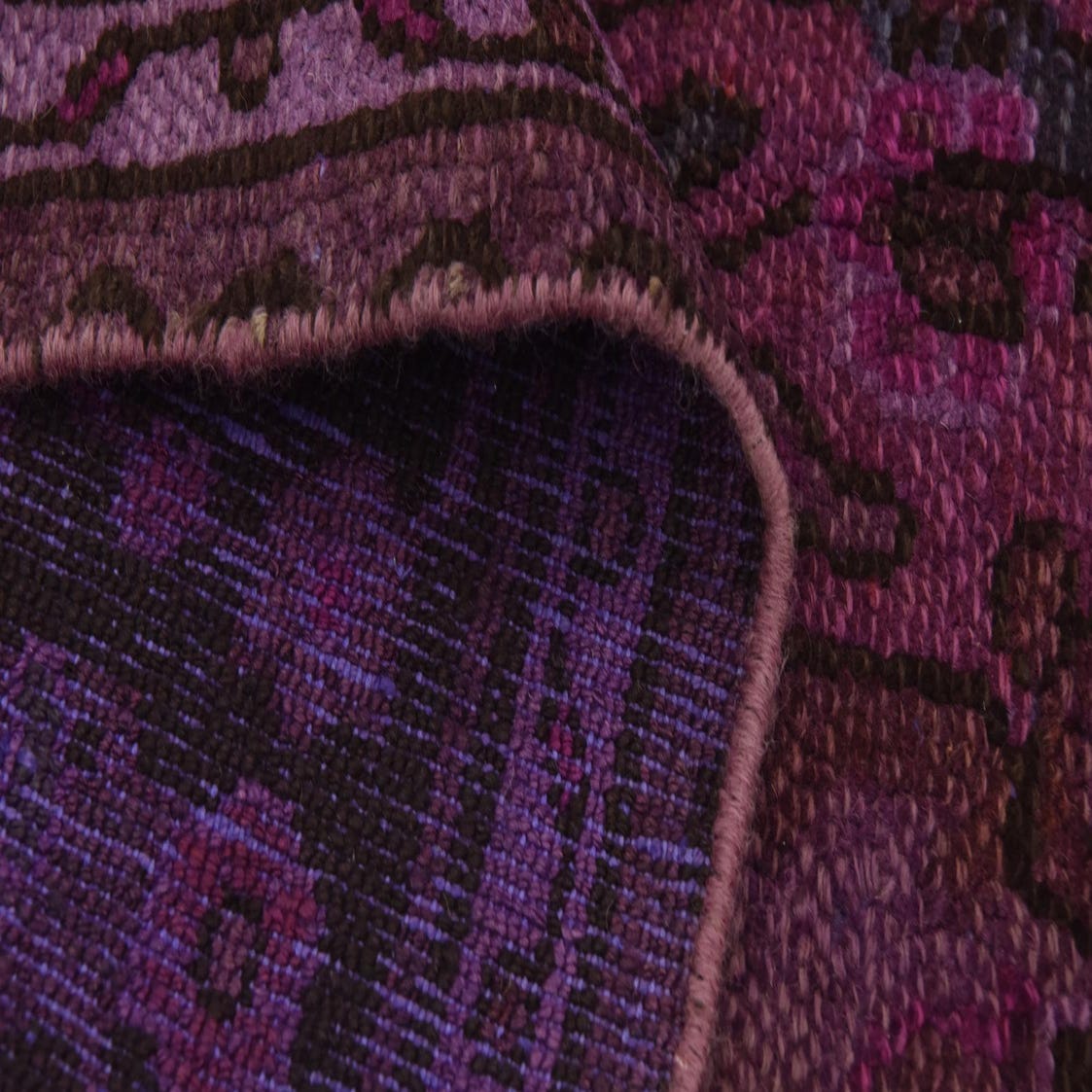 Primary color is Purple. Colors in this rug include: Purple, Black, Brown, Blue, Gray, Pink.