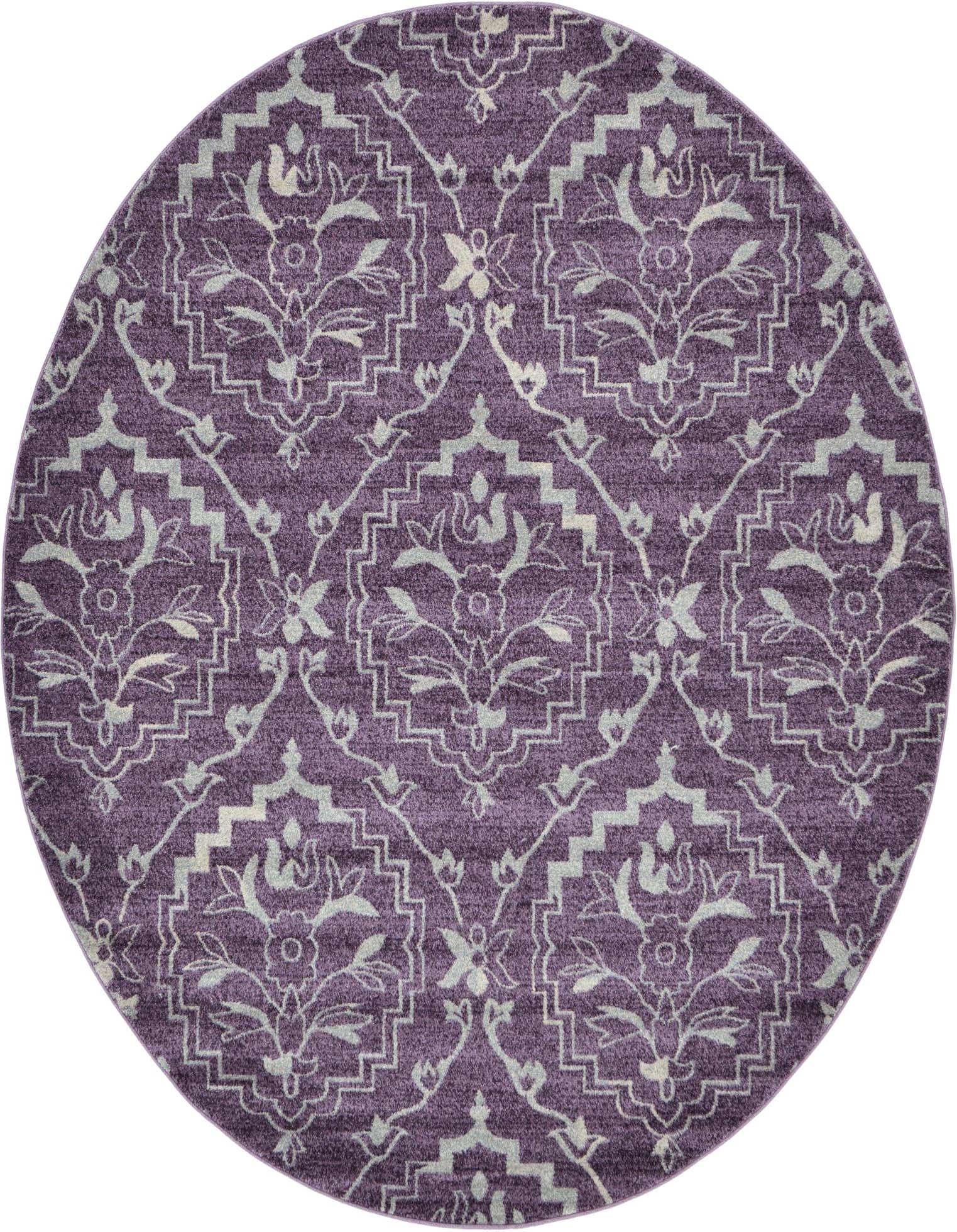 Primary color is Purple. Colors in this rug include: Purple, Silver, Ivory.