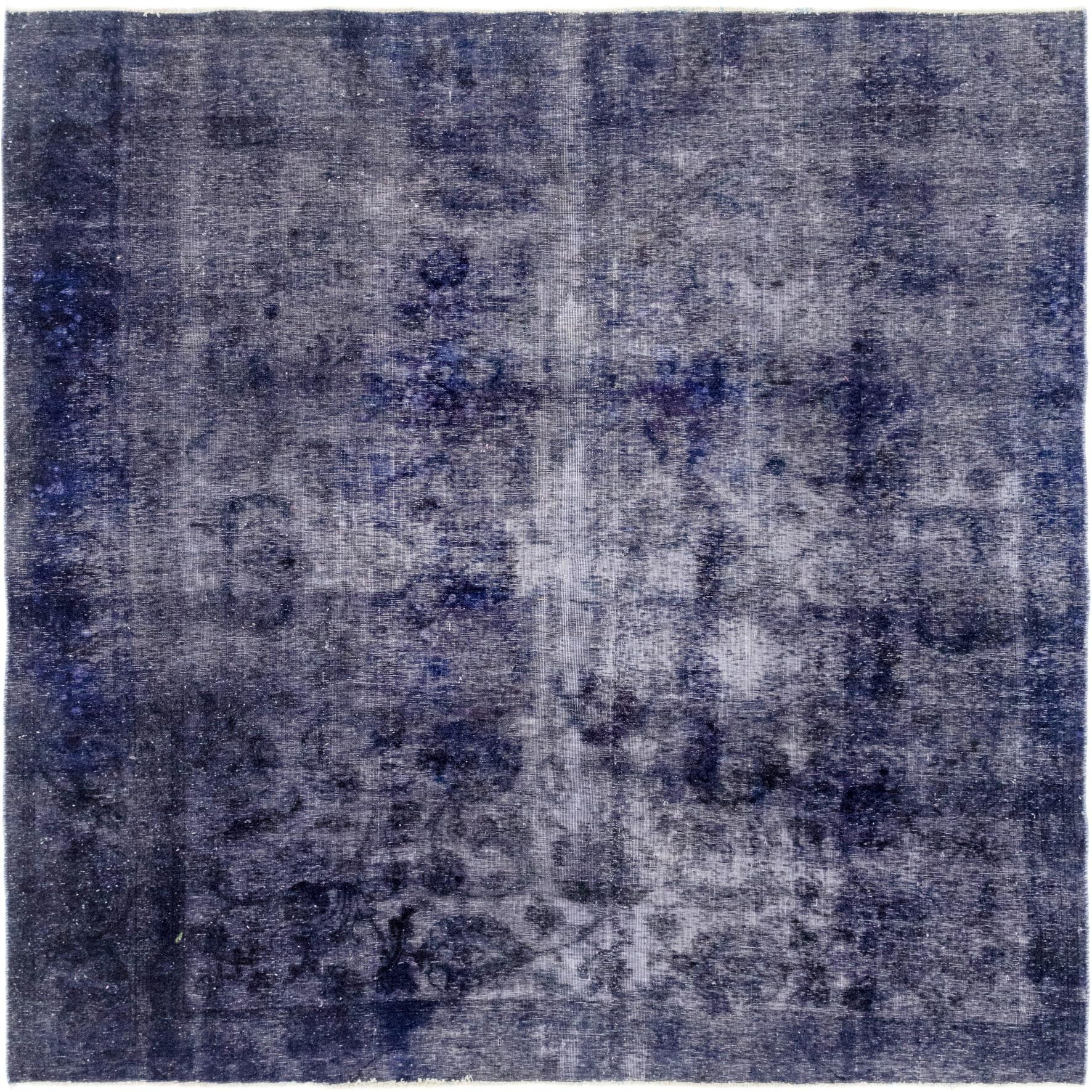 This hand-knotted Ultra Vintage collection rug presents a modern interpretation of traditional design, creating a stunning visual with a rich blend of purple and violet tones set against a deep purple background. The rug's 8 ft square dimensions make it a statement piece that can anchor a room with its substantial size and distinctive color palette. With a composition of 100% wool, the rug offers a luxurious texture and durability, ideal for high-traffic areas or as a plush centerpiece in quieter spaces.
