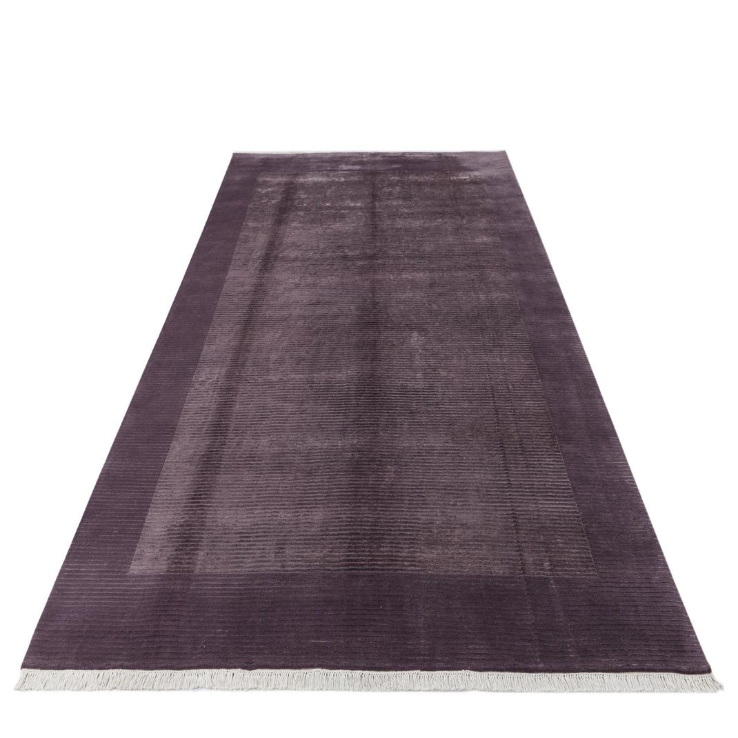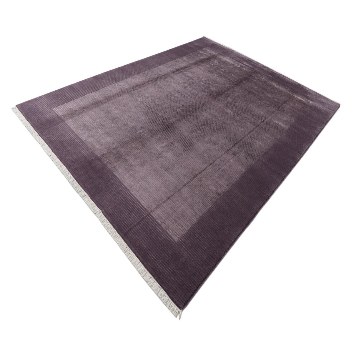 A rectangular 8x11 Darya rug in varying shades of purple, featuring a modern border design, suitable for a living room.