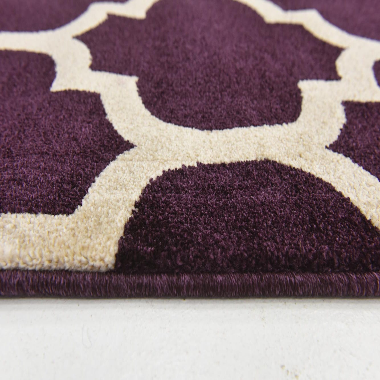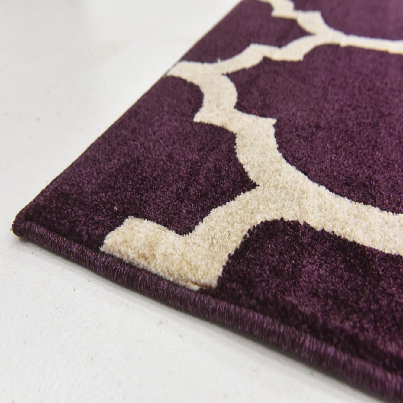 Primary color is Purple. Colors in this rug include: Purple, Ivory.