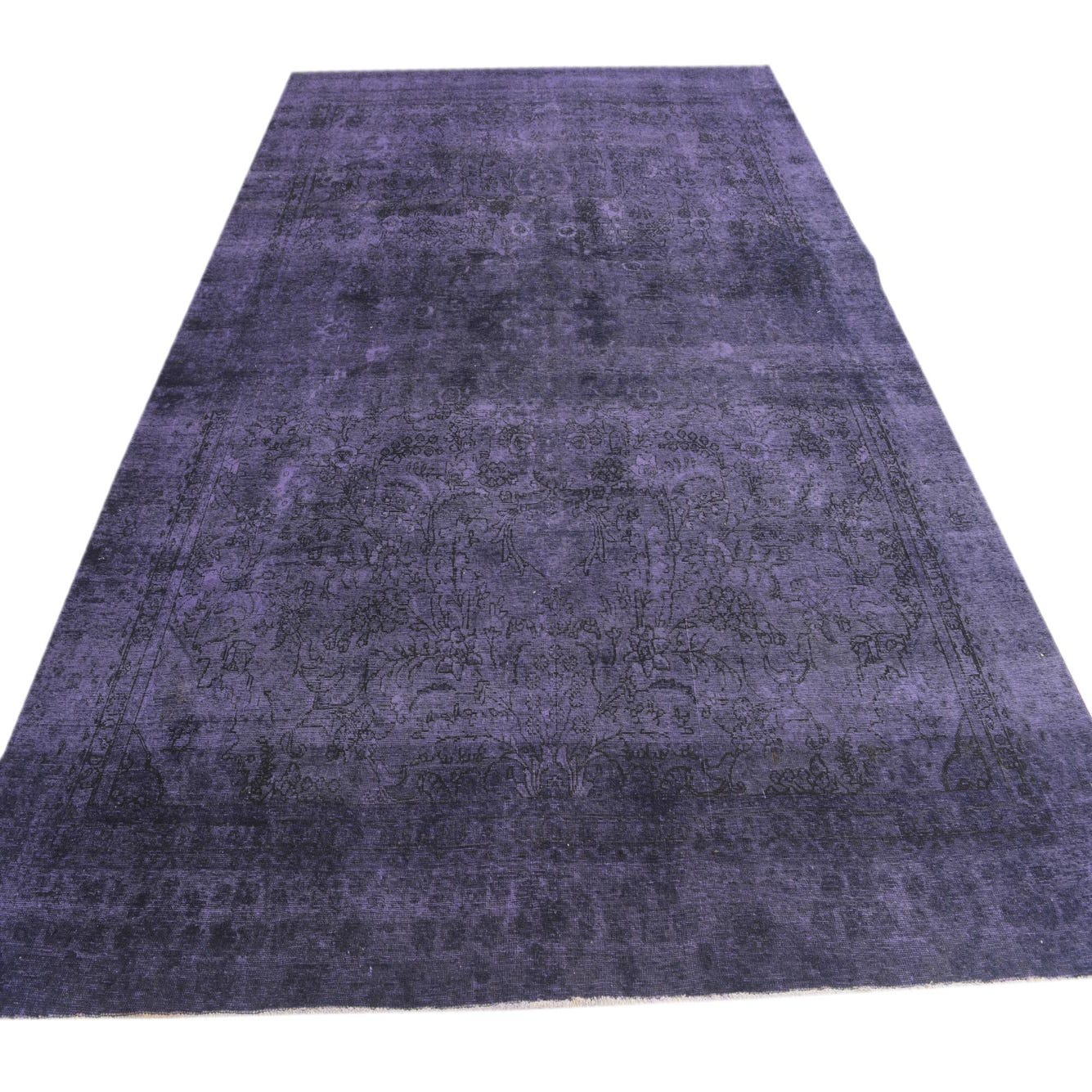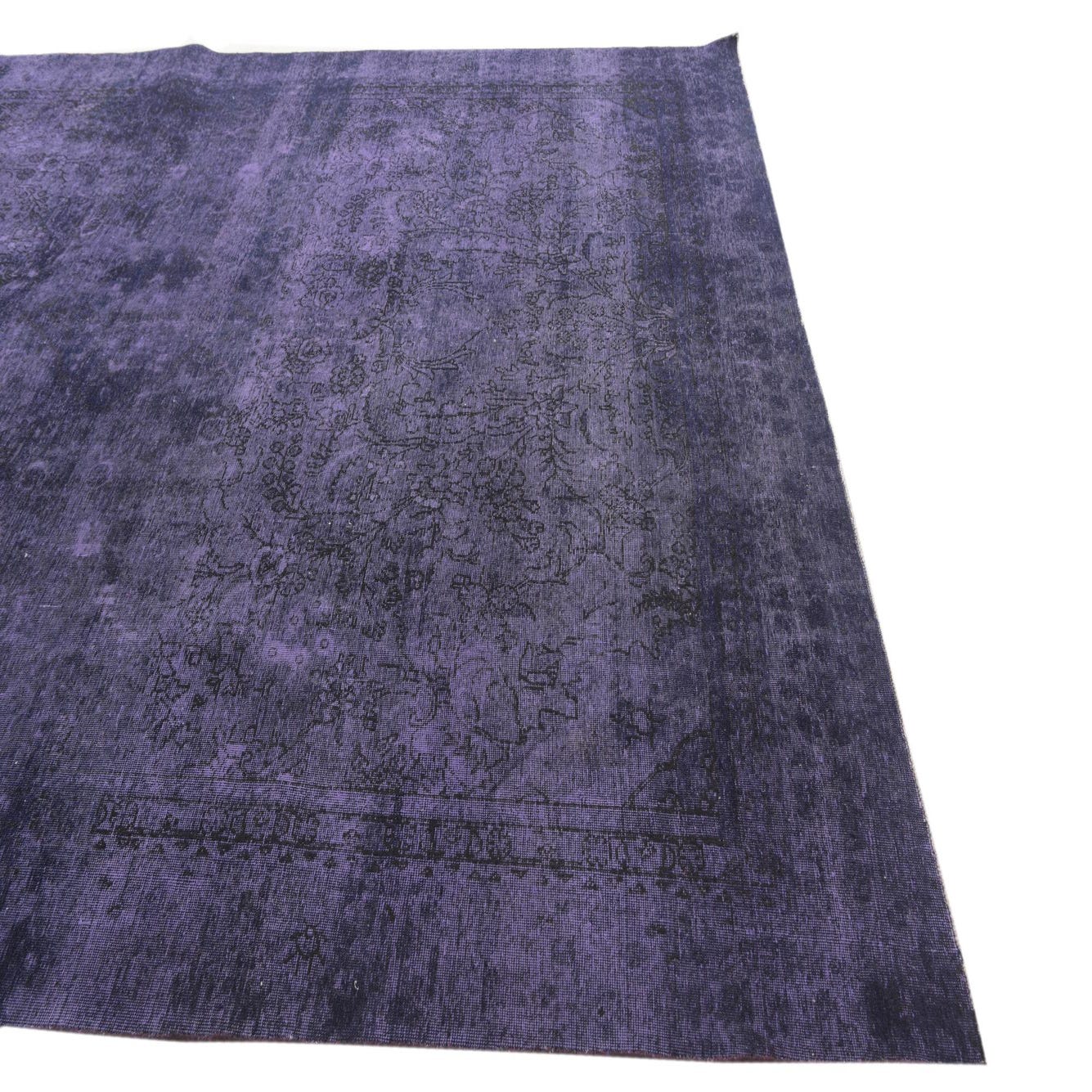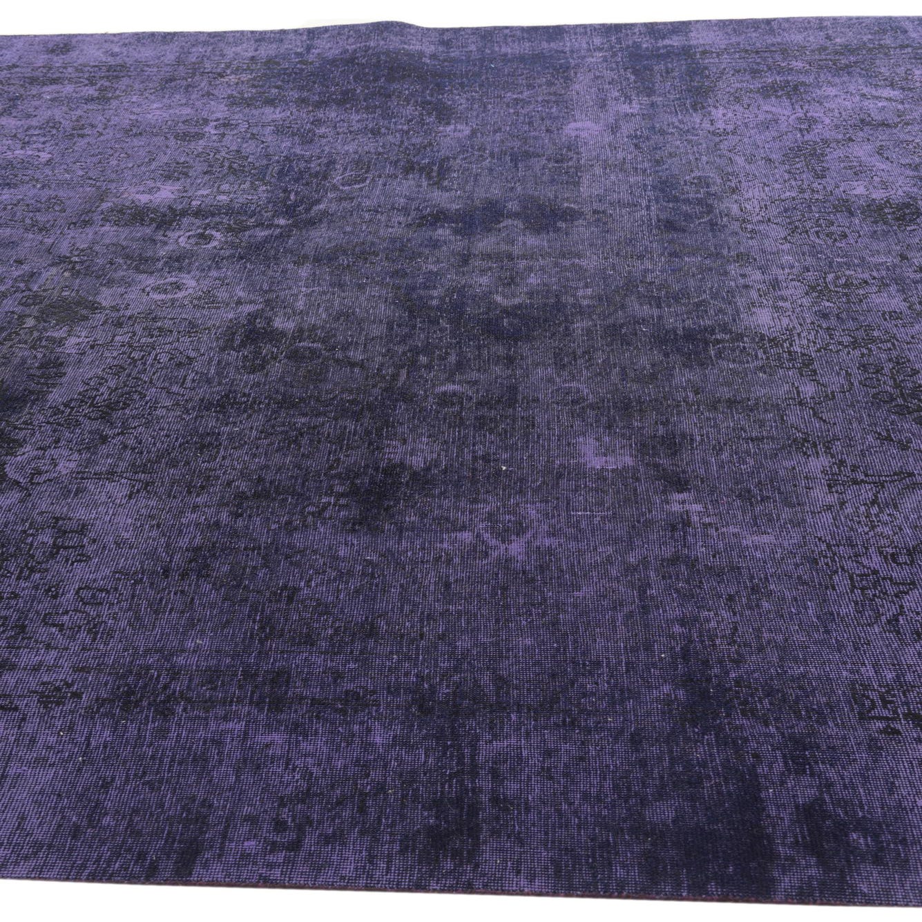 The Ultra Vintage collection presents a sophisticated 9x12 area rug hand-knotted of 100% wool, offering a durable and timeless piece. The intricate design showcases a traditional pattern with an artistic over-dyed motif, rendering each rug unique in its expression. The primary color elegantly spans across the rug's surface in a deep purple hue, contrasted by subtle black accents that highlight the complex detailing.
