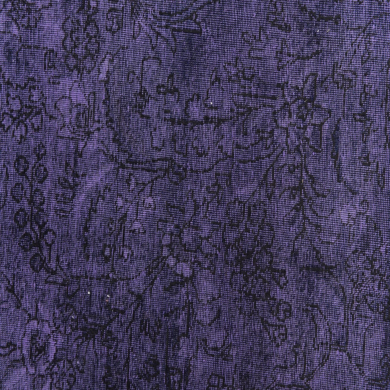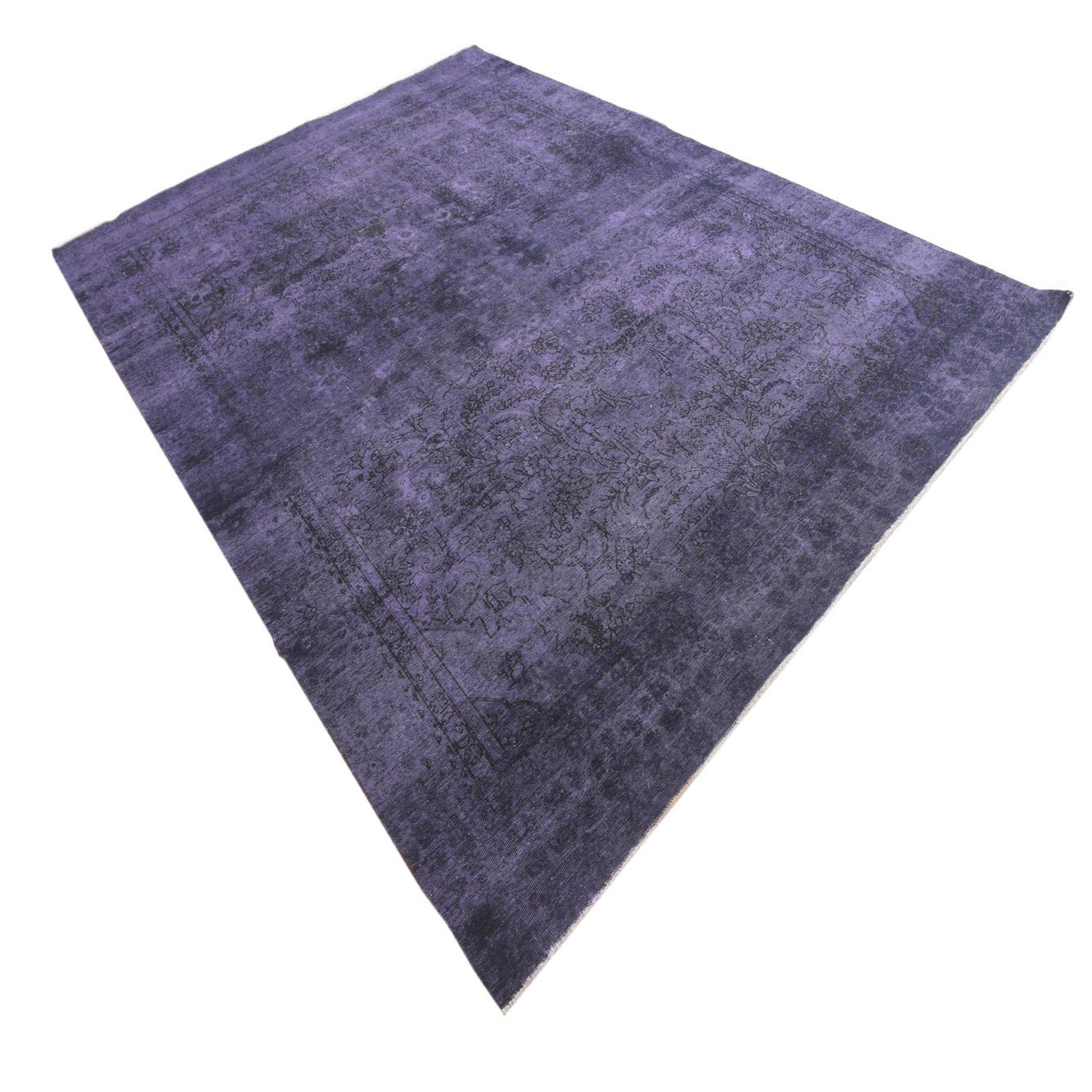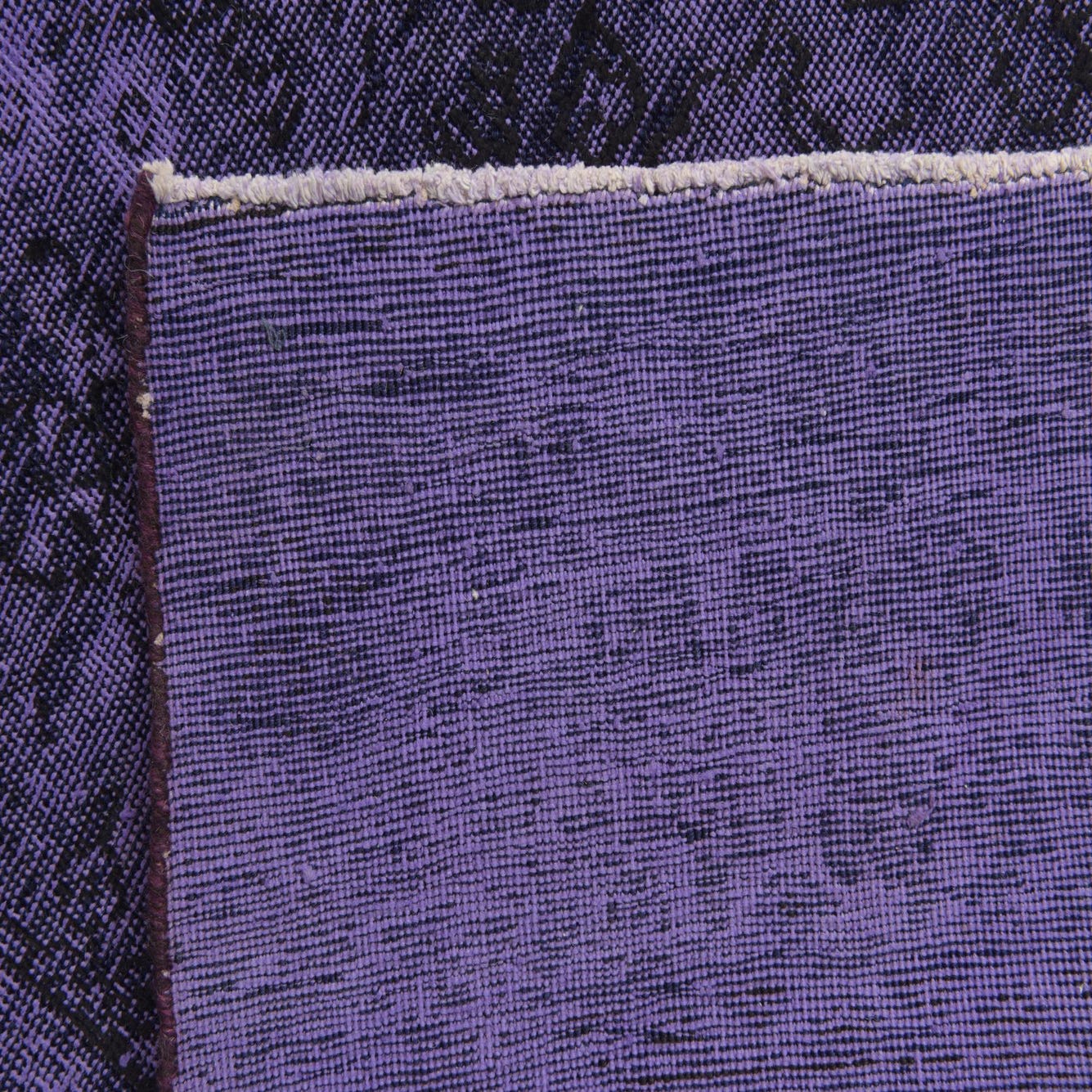 The Ultra Vintage collection presents a sophisticated 9x12 area rug hand-knotted of 100% wool, offering a durable and timeless piece. The intricate design showcases a traditional pattern with an artistic over-dyed motif, rendering each rug unique in its expression. The primary color elegantly spans across the rug's surface in a deep purple hue, contrasted by subtle black accents that highlight the complex detailing.