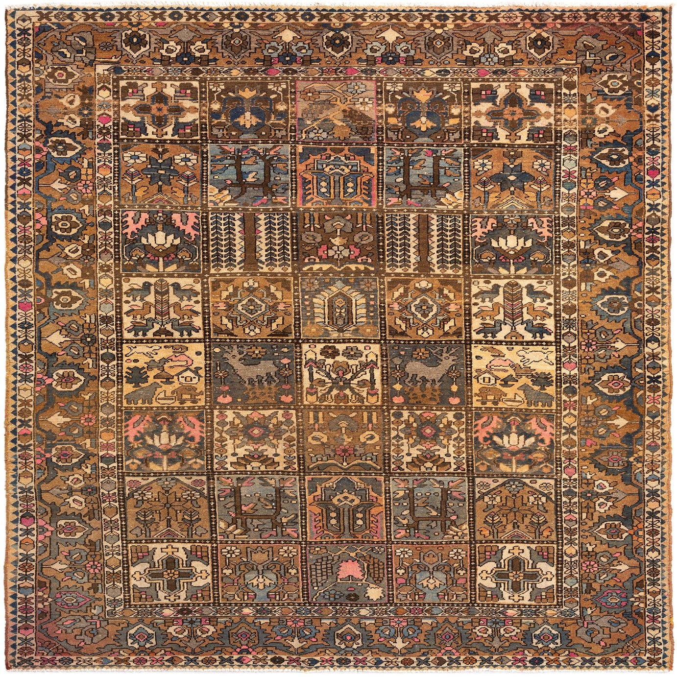 A 10 ft runner rug with a traditional Persian Bachtiar design, featuring a grid of squares with intricate patterns in reds, blues, and browns.