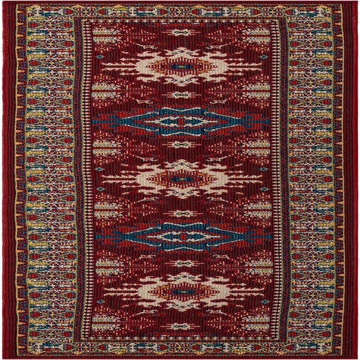 Machine-made from 100% polypropylene for outdoor use, this runner balances traditional motifs with durable, low-maintenance performance. Place it in a long entryway or hallway to introduce color and pattern without overwhelming the space, layer it on a covered patio to anchor seating, or run it beside a bed for a warm, patterned path. It pairs well with warm wood tones, leather or woven seating, and neutral linens, and complements both traditional and eclectic interiors where a rich, patterned runner adds structure and visual interest.