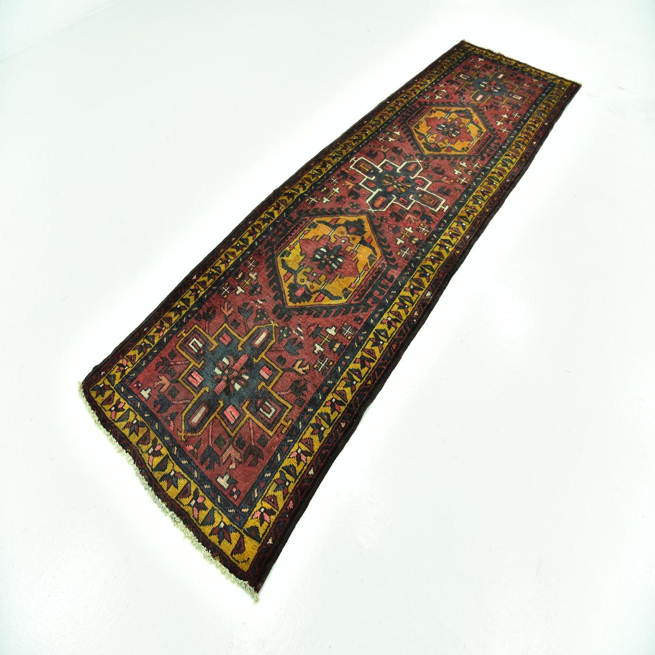 3' 3 x 10' 5 Hand Knotted Gharajeh Persian Wool Runner Rug