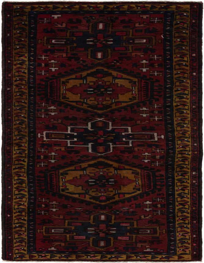 Primary color is Red. Colors in this rug include: Red, Beige, Black, Blue, Brown, Green, Pink, Ivory.