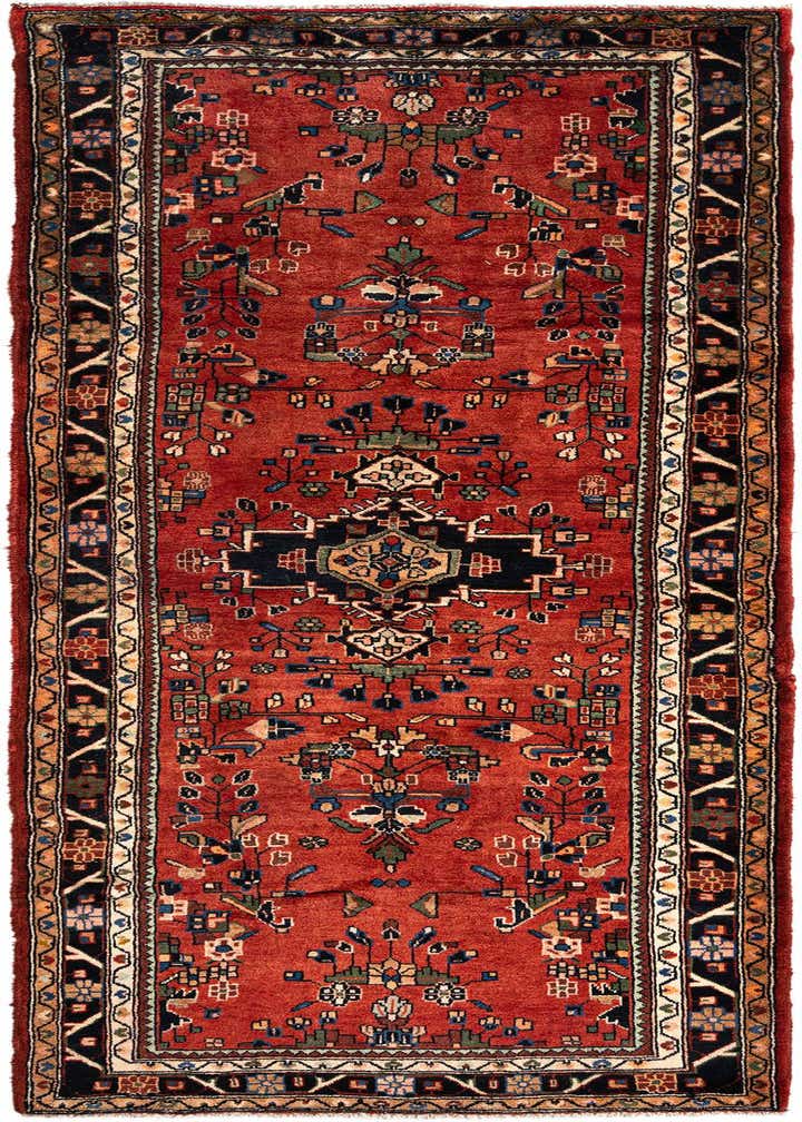 The Hamedan collection offers a handcrafted 100% wool 10 ft runner that presents a cohesive blend of red, cream, brown, green, and blue hues. This runner rug, predominantly red in background color, exhibits a classic design featuring a centralized medallion complemented by geometrically stylized floral motifs. The intricacy of the pattern is framed by a complementary border that encapsulates the traditional aesthetic.