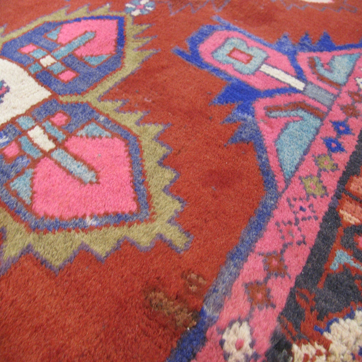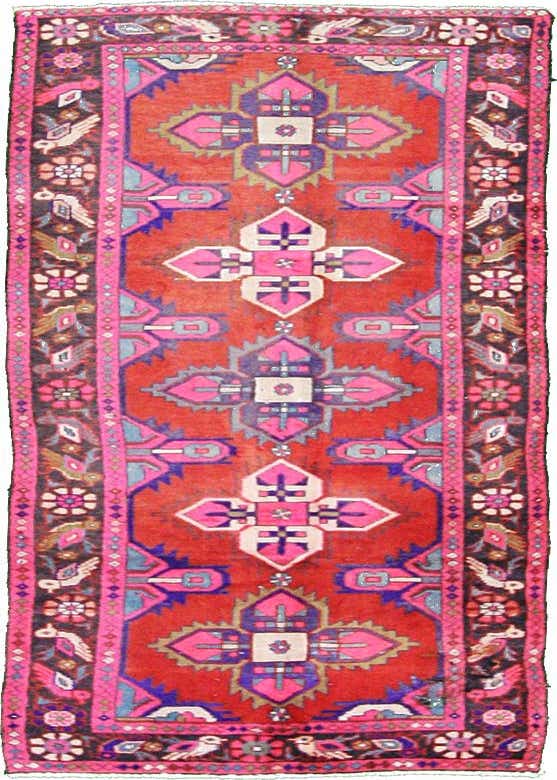 Primary color is Red. Colors in this rug include: Red, Pink, Navy Blue, Brown, Ivory, Light Brown.
