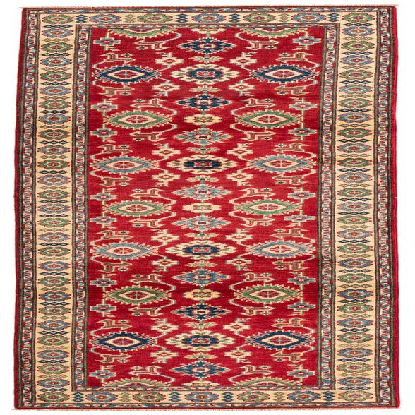 The runner's strong visual presence is best complemented by interior designs that appreciate artisanal and heritage accents. It could seamlessly integrate within a classic style decor, provide a contrast in a minimalist modern setting, or complement an eclectic mix of global-inspired elements. The quality and aesthetic of this Kazak runner make it not just a floor covering but a piece of art for the home.