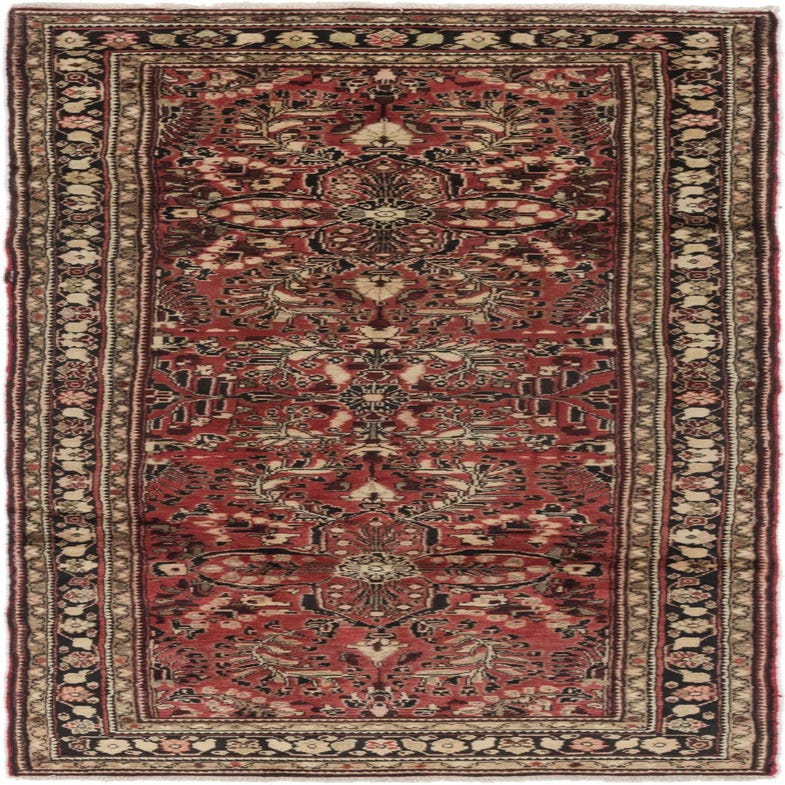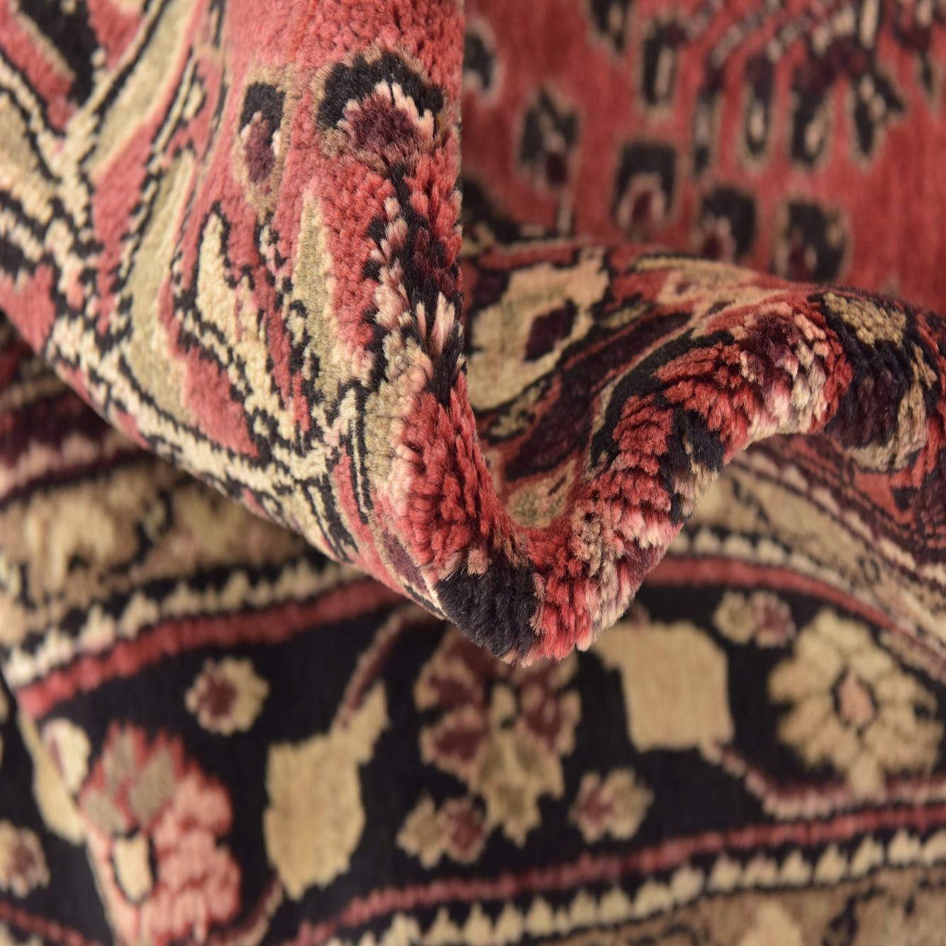 Primary color is Red. Colors in this rug include: Red, Beige, Black, Brown, Ivory, Pink, Burgundy.