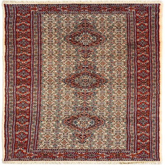 Primary color is Red. Colors in this rug include: Red, Red, Cream, Blue, Orange, Dark Blue, Green.