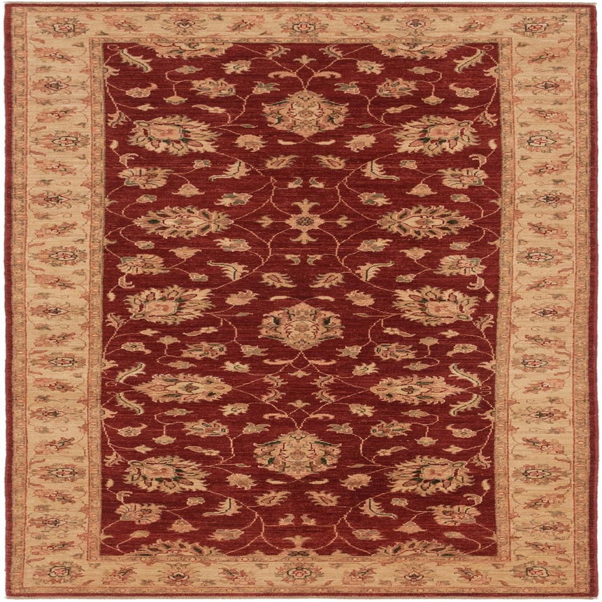 Primary color is Red. Colors in this rug include: Red, Beige, Cream, Green, Brown, Tan, Olive, Peach.