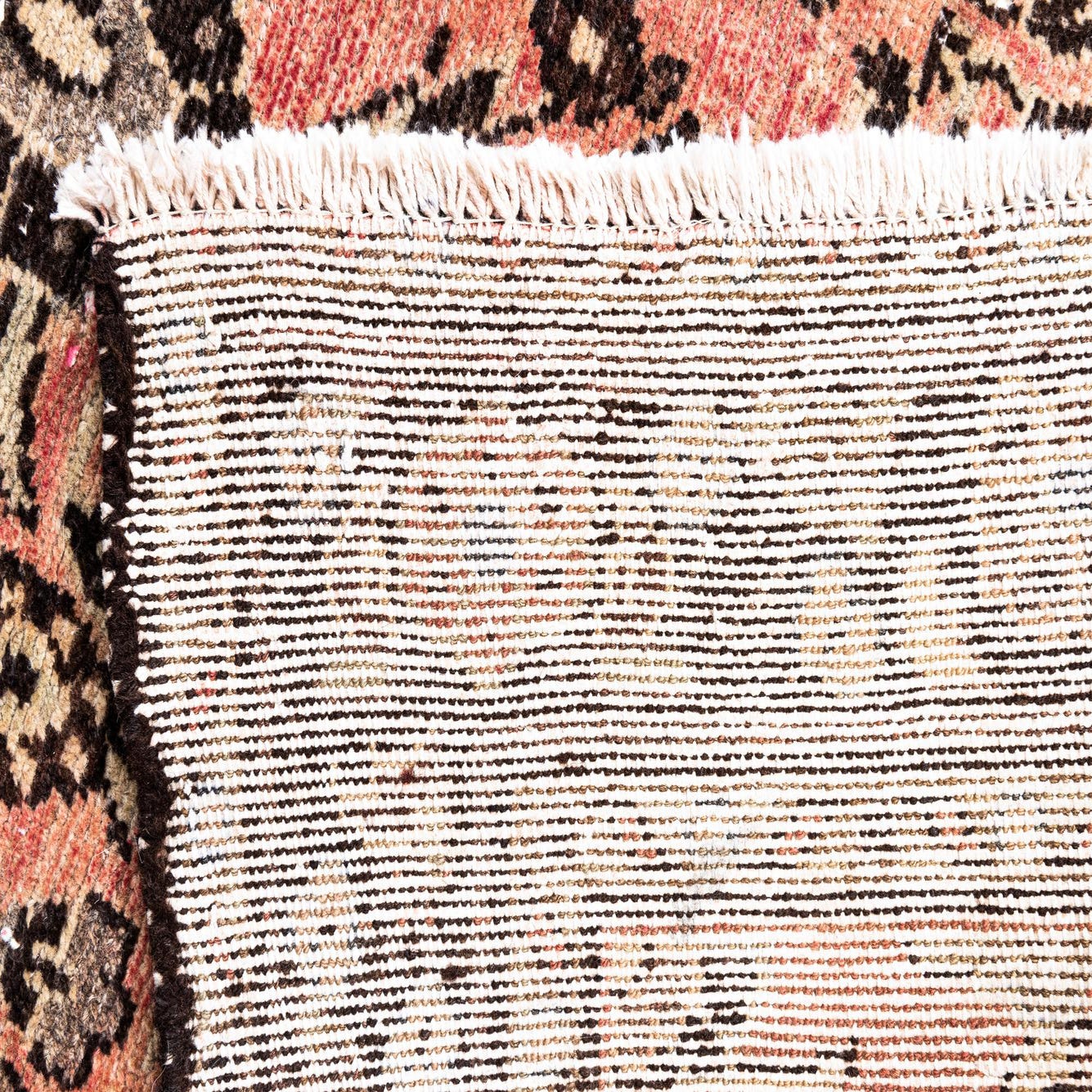 Primary color is Red. Colors in this rug include: Red, Brown, Beige.
