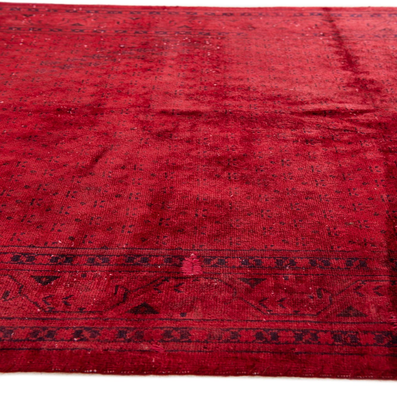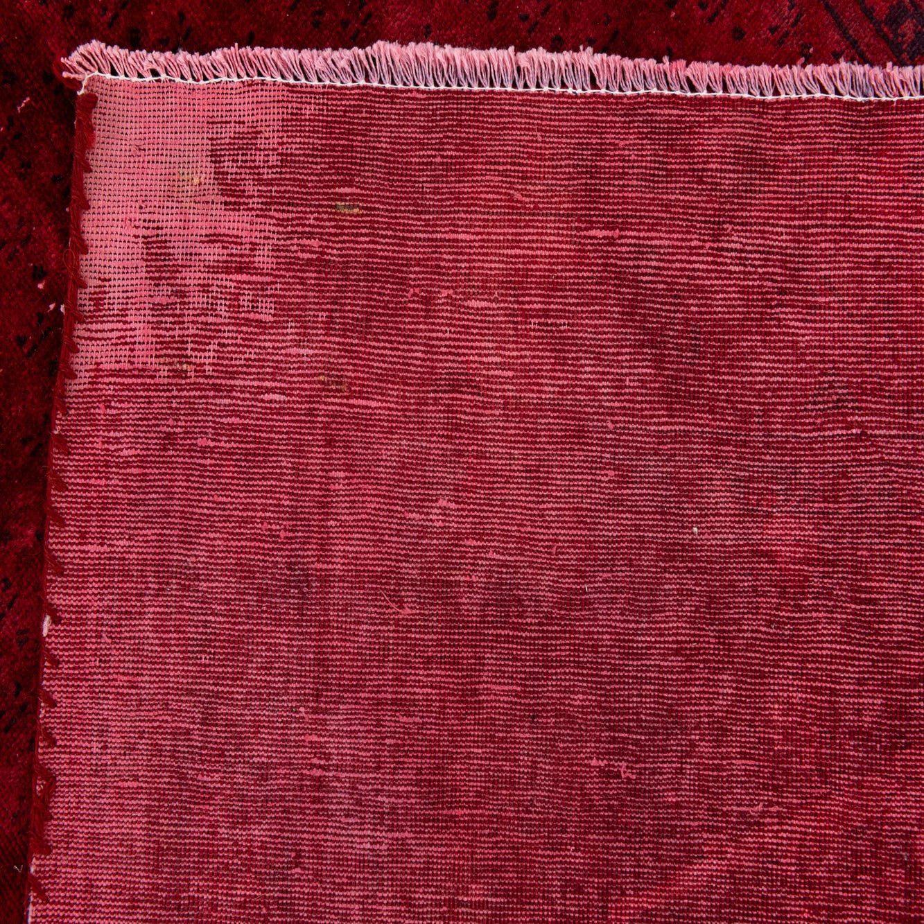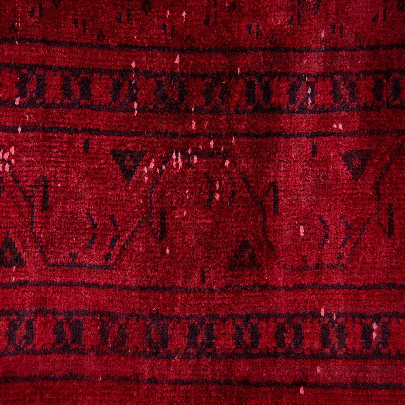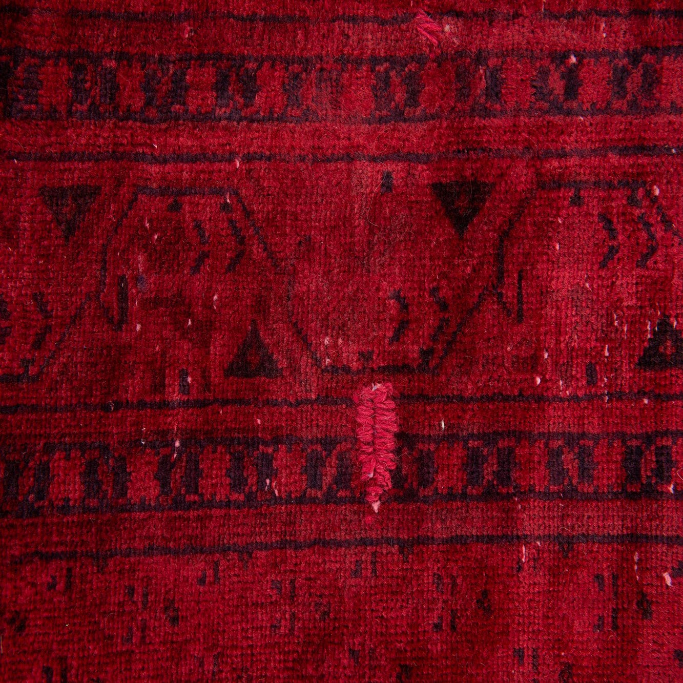 A 10 ft red runner rug with a distressed Persian pattern and dark border, perfect for a hallway.