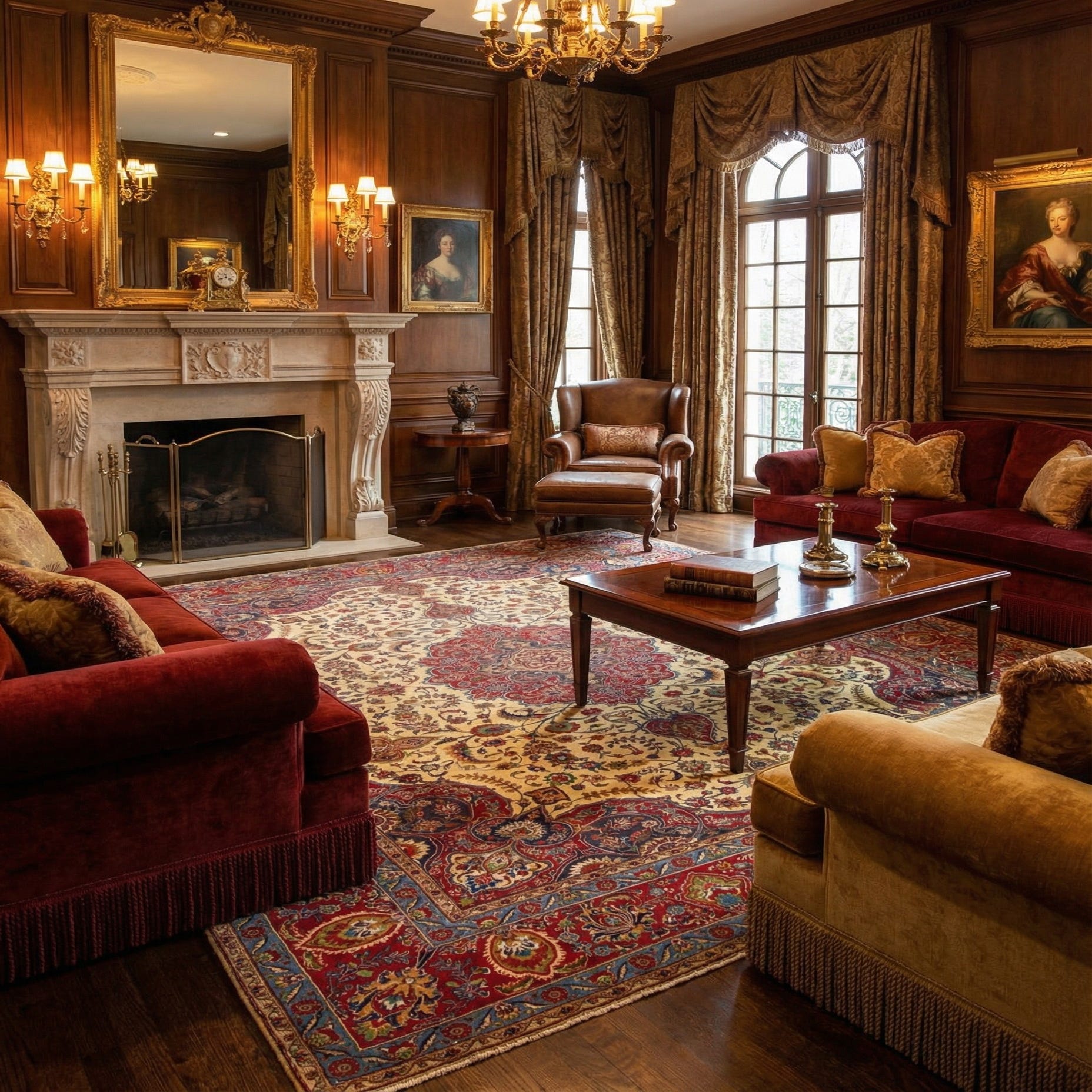 This piece works well under a seating group in a formal living room or in a dining room beneath a large table, where the medallion and border can be fully appreciated. It also pairs nicely with dark wood furnishings and leather sofas for a traditional look, or can bring warmth and pattern to a neutral, contemporary space when layered over hardwood floors. The hand-made wool construction provides lasting texture and presence in rooms where a steady, classic anchor is desired.
