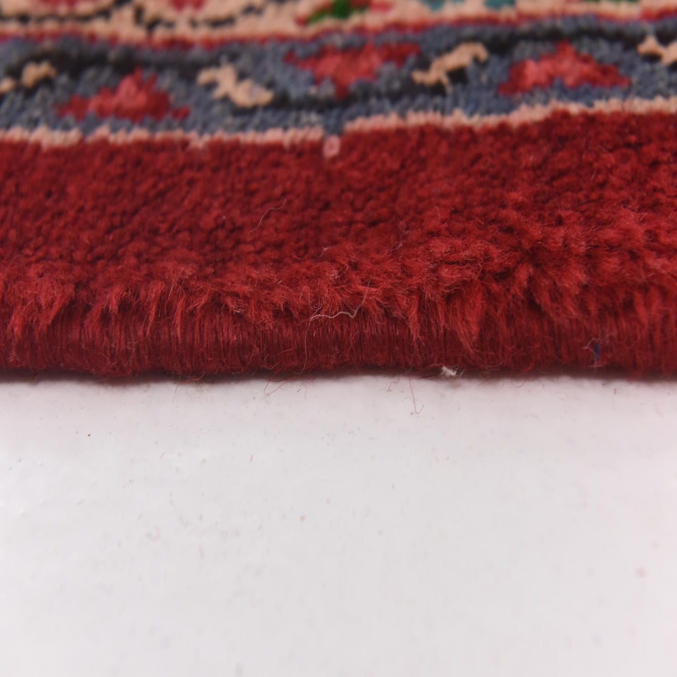 Though semi-antique with an age of 40-60 years, the rug exhibits character through its low pile spots, which add a sense of history and uniqueness to each fiber. This testament to its longevity and craftsmanship makes the rug a compelling choice for those valuing both heritage and aesthetic.